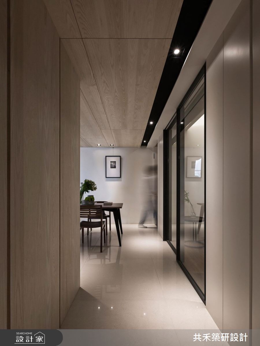 設計師加入木皮鋪敘美化廊道空間,讓自然紋理一路蔓延至私領域,再搭配天花燈帶導引動線,讓居家過道也充滿著設計感!