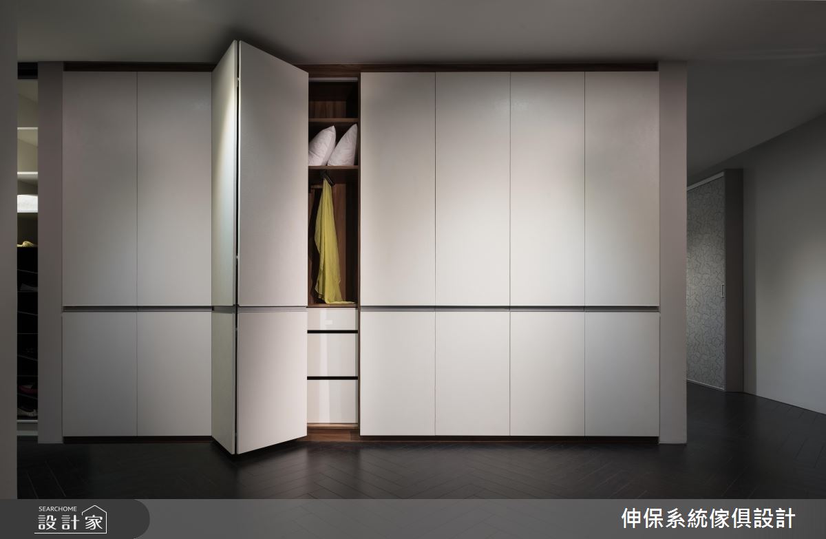 櫃面可見低調的無把手設計,讓塊面更形簡潔,佐以筆直線條的精細勾勒,帶出現代風格的率性及俐落!