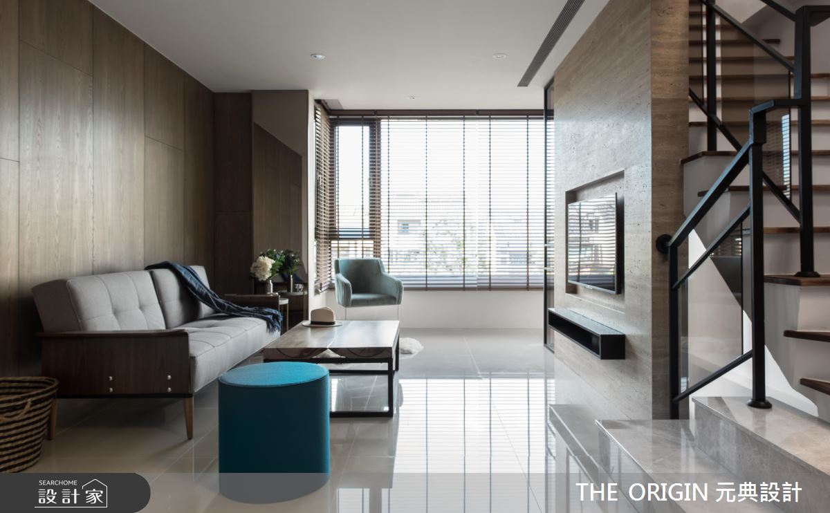 居家選用大量溫潤木質結合淺色天然石材,引導樸實真誠的感受,並給予自然光與人造光烘托,讓冰冷石材也散發出溫煦氣息,天花則加入木格柵元素,形成動線和視覺的指引,並促使場域串聯,讓空間感間接獲得放大;從玄關進入後的一側牆面,更銜接不加修飾的原木,襯佐工藝品裝飾,型構出有如美術館般的展覽情境;並透過量體與塊體,劃出不同的生活區塊,將客廳與餐廳安置在一側,另一端則保留進入二樓的動線;樓梯引用了玻璃及鐵件搭構側牆,援引光線的穿透,踏階材質更悄悄做出差異,詮釋不同場域的轉換,樓梯底下保留了一小塊空白,陳列簡約的桌椅,搭配著窗外篩落的光影,闡述靜謐放鬆的時刻;寢臥,則可見床頭牆的細緻質紋,帶出濃淡有致的層次變化,搭佐粉色系的牆面色調,創造出沉靜不沉悶的空間觀感!