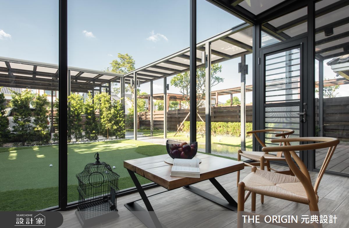 介於戶外與室內之間,設計師規劃出了一塊休憩區域,既保留了開闊視野,亦不受日照雨天的限制,面對著綠意藍天的好景色,使居家生活也能覓得度假感受!