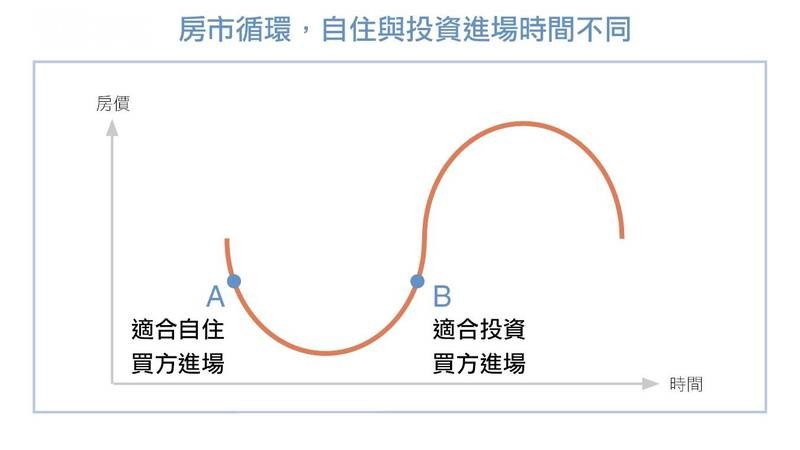 但以投資為主的客戶建議再觀望,等到B點後再進場。畢竟投資有機會成本,自住只要房價不會大跌就可以買進,但投資最好等有增值空間時再考慮比較好。A點到B點的時間長短不一定,什麼時候會進入B點,可以觀察大坪數住宅或豪宅的成交狀況。