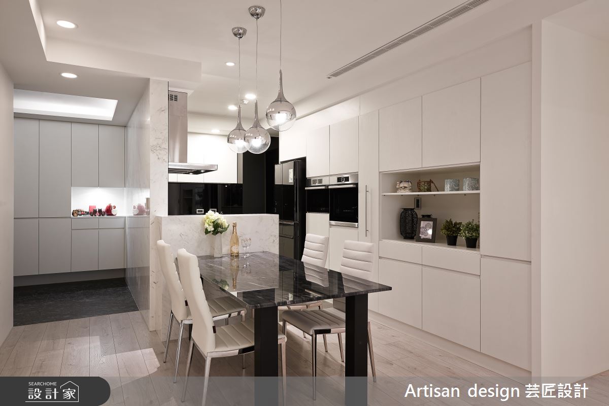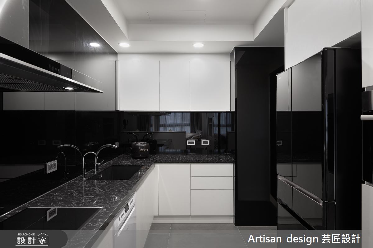 簡練的黑白對比,一直是不褪流行的設計經典,廚房領域內運用高反差的黑白色調,不僅注入摩登俐落感,更達到了拓大空間感的效果!