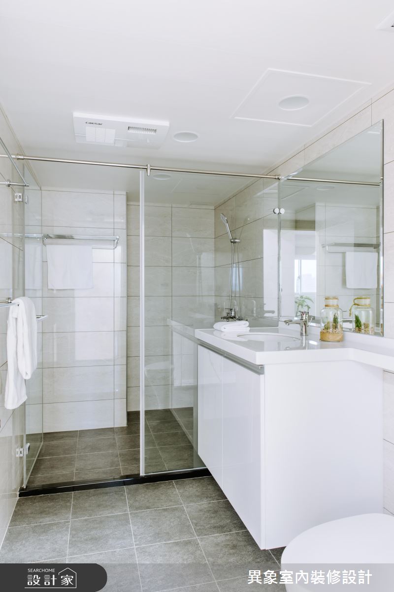 翻修後的老屋,不僅擁有清新的好採光,也具有齊備的生活機能性,為了使居住上更加舒適和安全,設計師將水、電重新整理,並為前陽台窗戶施打防水膠,解決居住安全問題,而為了防止其他樓層的煙味散入,也將原管道間封堵,更重新為浴廁和廚房抽風重新拉配獨立管線。因應一家 4 口的生活需求,除了具備充足的收納,格局上則將兩間小衛浴整併為乾濕分離的大浴廁,也為家中的兩個孩子調整出舒適、寬敞的私領域空間。