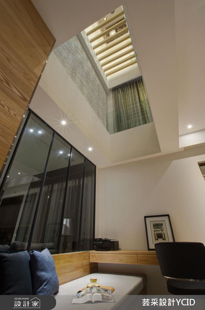 設計師讓一樓公共空間呈開放通透格局,使客廳、餐廳交互串聯,書房則加入透明隔間,促進生活中的互動交流,同時引用知性木紋鋪陳一室溫暖,搭佐石材、鐵件的運用,勾勒沉穩大器的氛圍;小孩房和長輩房則安置於別墅的二、三樓,刻意於靠近樓梯的垂直動線處,以半開放場域如畫室、閱讀室等維繫開放感受,並打造天井,串聯二到四樓的光線,營造視覺流動,型塑出更為挑高的空間視野;四樓則留給主臥室使用,並規劃休憩閱讀區,佐以完美的動線分佈,機能與典雅兼容並蓄!
