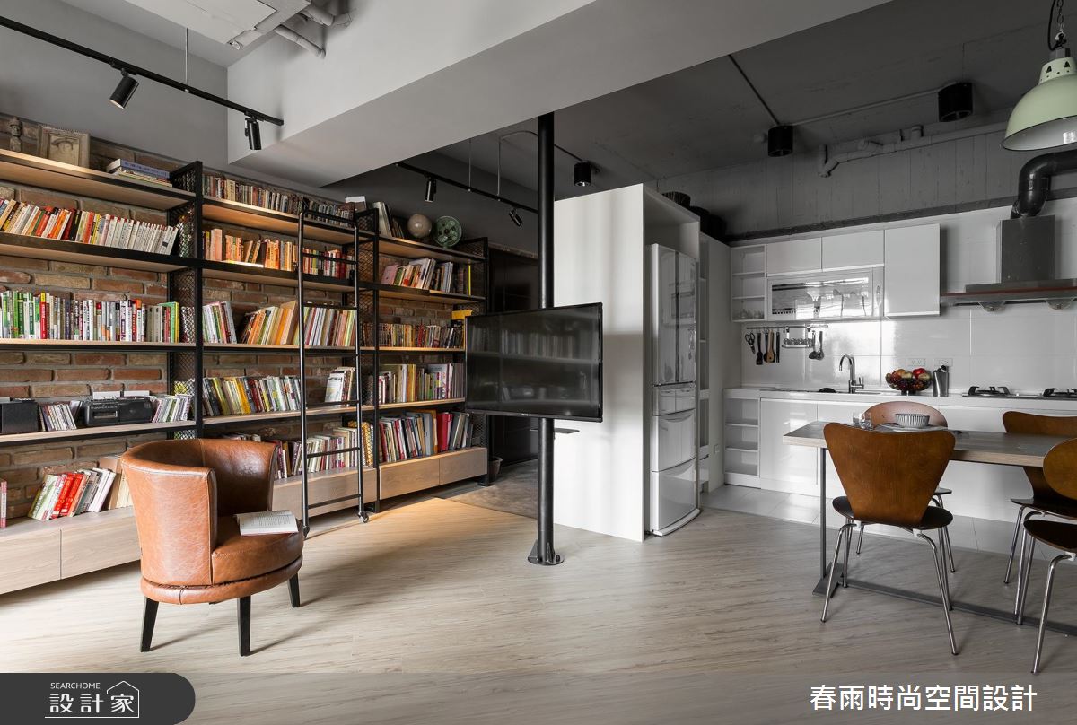 25 坪單身宅,設計師在一人自住的前提下,重新整頓原有3房格局,將臥室、書房及更衣間重新定義,並給予個性工業風的進駐,締造充滿質感的生活場景,快跟著小編一起來看看吧!設計師讓公領域呈開放式規劃,並捨棄制式的電視牆,透過一面以鐵件為結構的客製書牆聚焦視覺,背景則鋪述大面積的復古紅磚,此書牆放的多是屋主