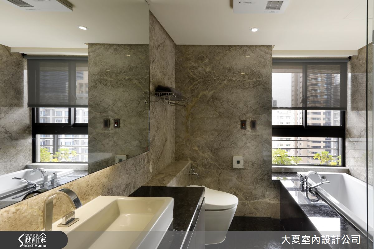 衛浴內藉由淺色石材援引輕盈質量,搭配自然光照的進駐,促成明亮溫煦的使用情境,替身心帶來徹底的放鬆!