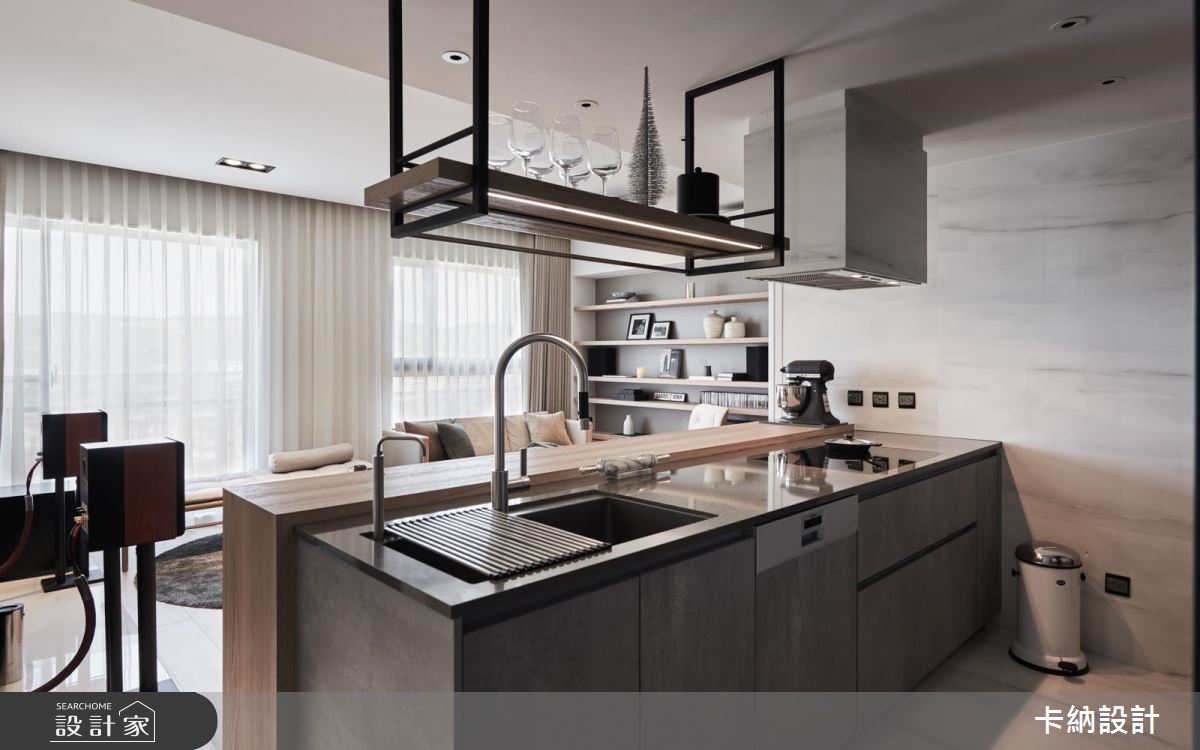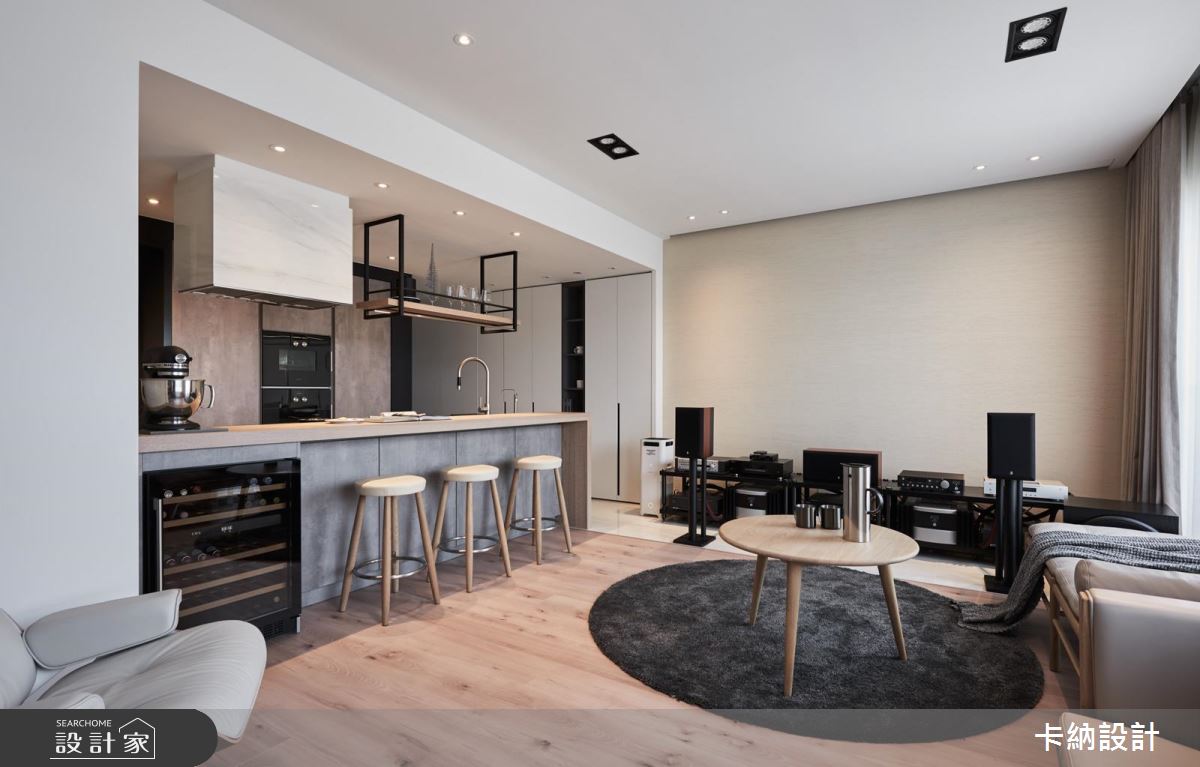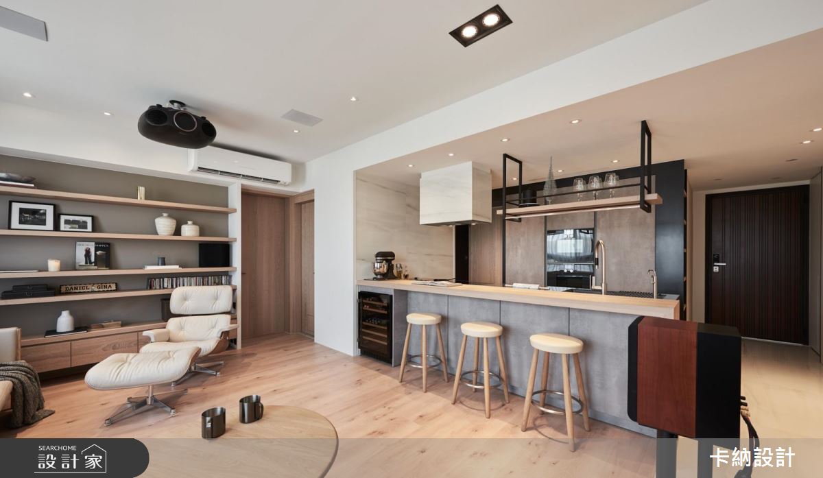 新婚夫妻想要依據喜好打造 20 坪新婚宅,必須同時結合閱讀、視聽與烹飪需求,因此卡納設計將重點放在公領域規劃,打造機能與美學兼具的視聽品味好宅!