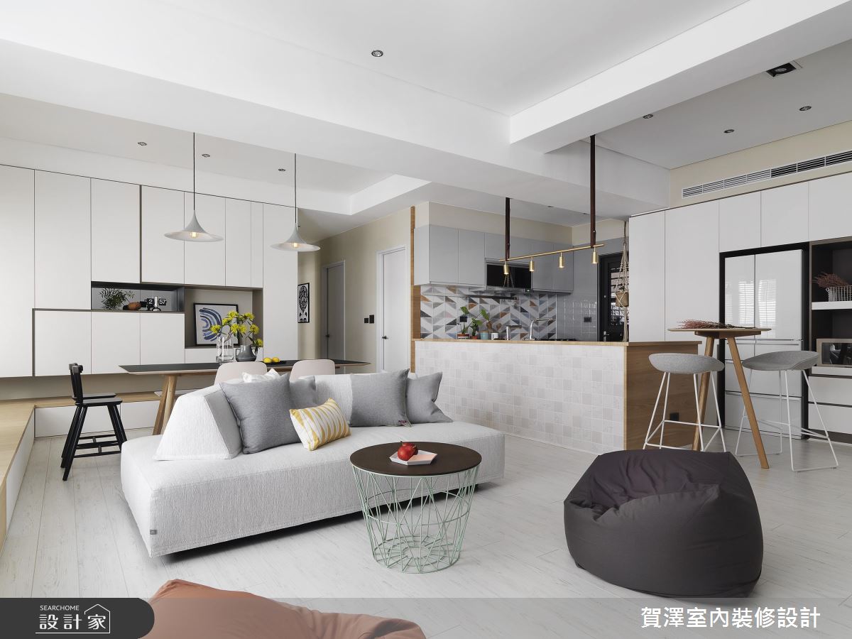 利用低度的沙發、家具為空間界定,讓空間、採光更加寬敞舒適,也增進了家人之間的生活互動,為小家庭打造出清爽自在的居家空間。