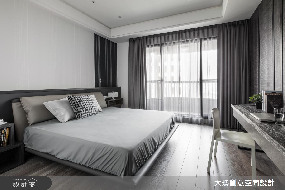 36 坪新成屋必須同時融合三代的使用需求及品味,大瑪空間設計利用深色調打造沉穩卻不顯老氣的家,更讓一家 4口同時能擁有寬敞的歡聚時光與各自的私密小天地。