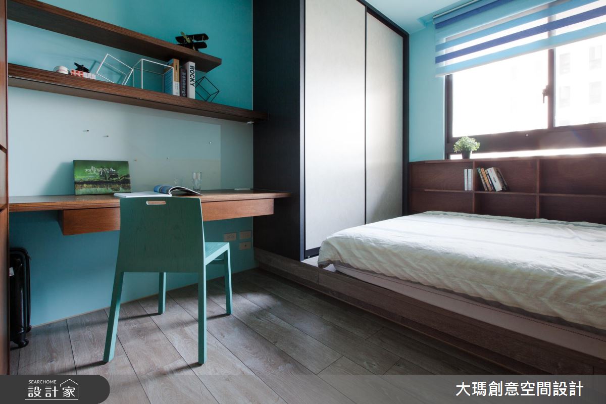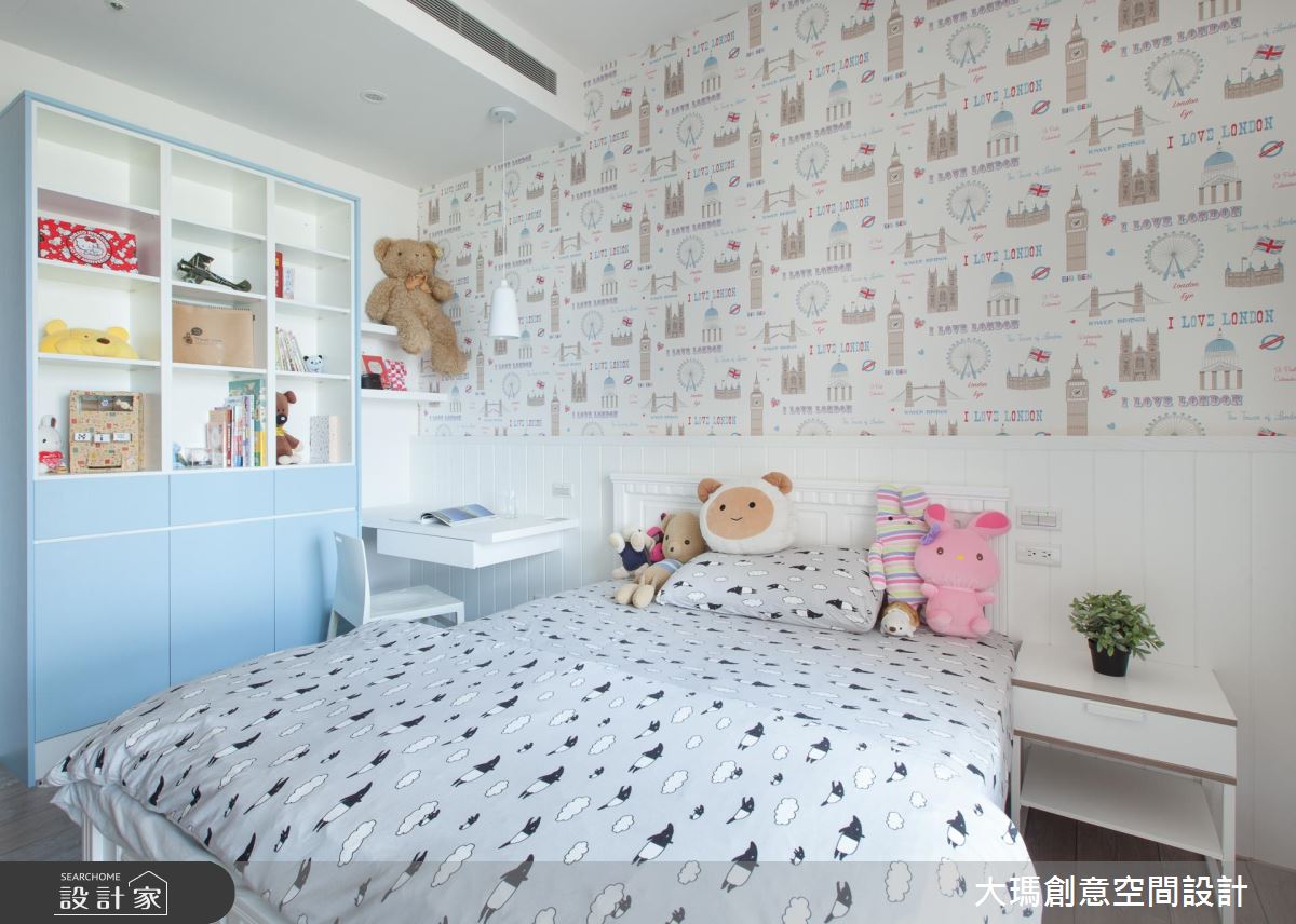 一雙兒女的私人天地分別有著各自的需求,設計師依據兩人喜好分別以壁板、壁紙與明亮的跳色展現在櫃體或牆面,形成活潑的個人特色。