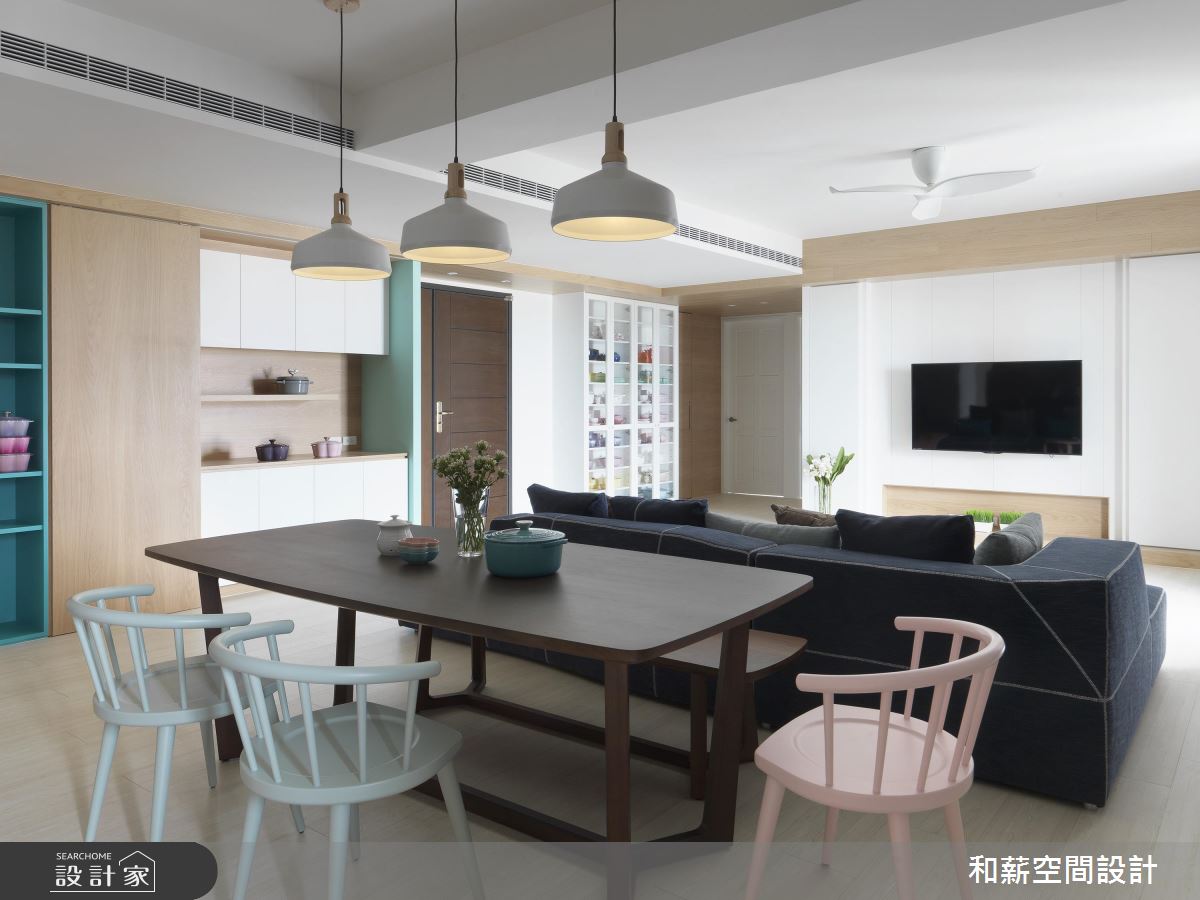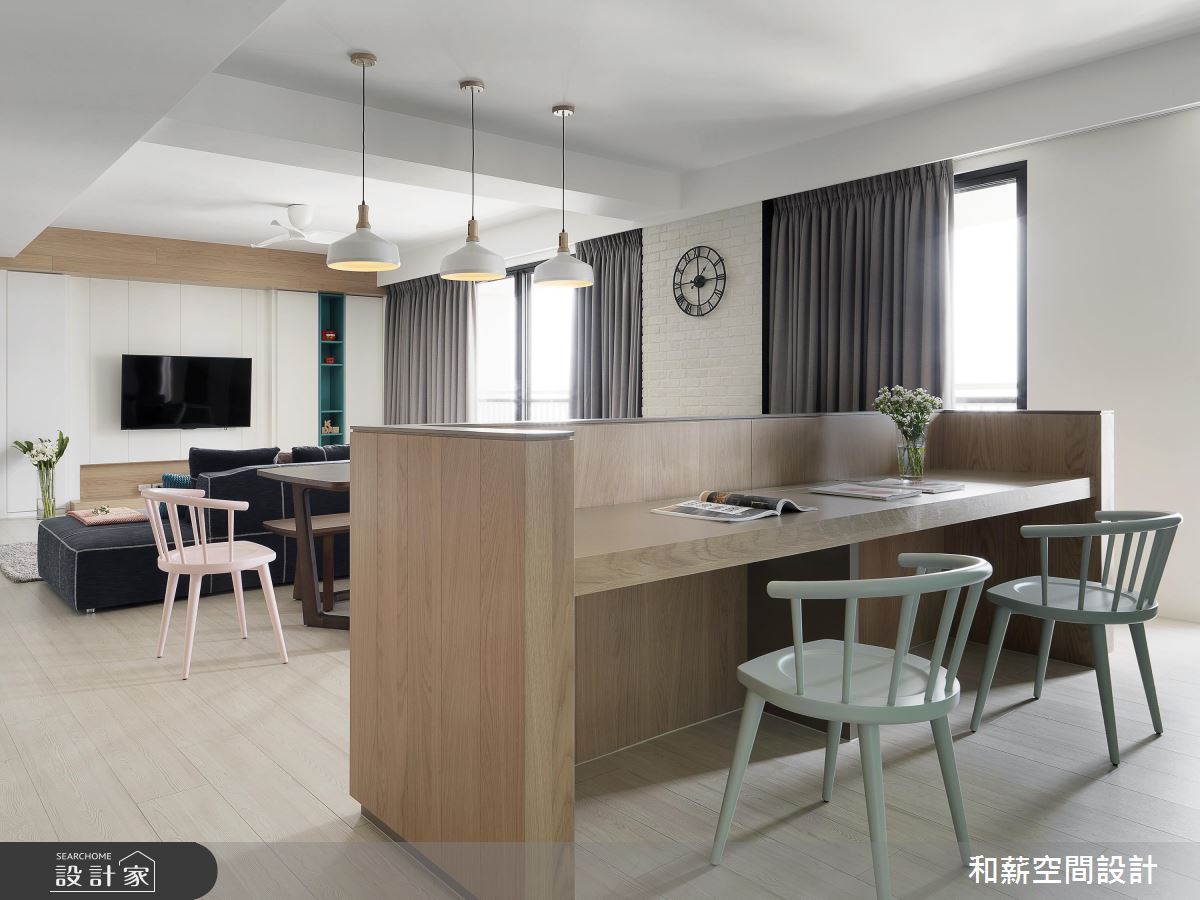41 坪中古屋,設計師以北歐風替空間定調,將原格局隔間予以敲除,賦予開闊的公共領域視野,透過客廳、餐廳、書房、廚房的開放整合,將公區領域放至最大,搭配北歐風的清新挹注,打造出親子同樂的生活場景,快跟著小編一起來看看吧!