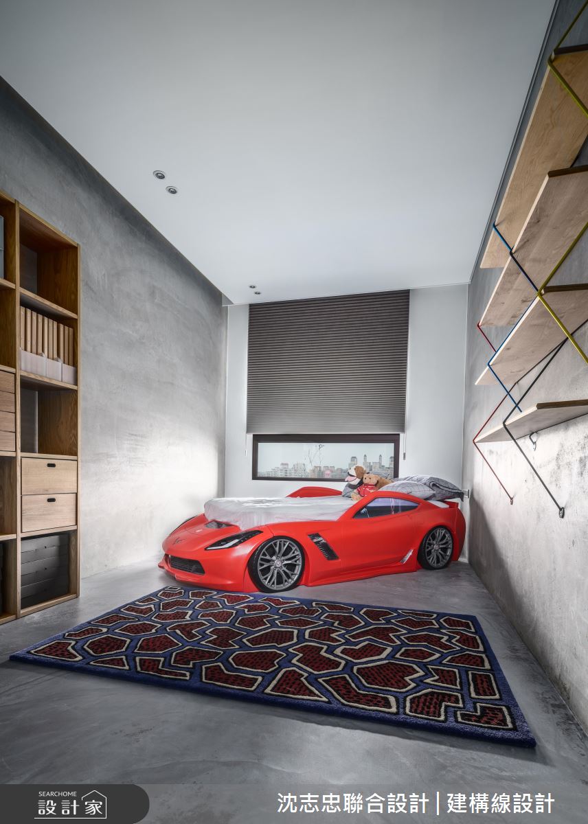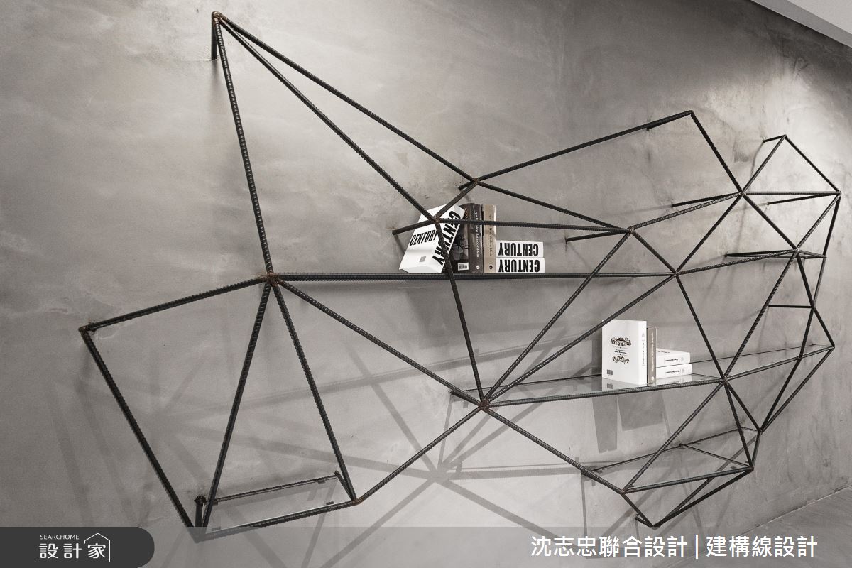玄關處,設計師選用具有穿透性的鋼筋線條,一旁結合不落地的懸浮櫃體,開啟充滿律動的入門場景;進入客廳後,則可見到素樸的灰色主調,搭襯大膽活潑的軟件地毯,展現鮮明的色調比例,並以獨特的電視主牆聚焦視覺,採用原始富粗獷氣息的石材、佐以細緻的工藝,讓牆體表面呈現細膩的紋理痕跡,沙發背牆亦加入巧思,利用鋼筋做成3D書架,兼具藝術性與機能性;一旁銜接的是廚房拉門,以黑色為底,以雷射切割技術穿鑿出許多小圓洞,促使光線的隱隱穿梭與流動,形成視覺上的驚喜,餐桌中島也突破了制式樣貌,結合金屬、木作、鐵件等,彰顯裝置藝術般的空間趣味;寢臥內,則承襲著淺灰的底調,但將櫃體打造得有如牆面上的積木,搭配著漸層的色彩運用,彰顯童趣且生動的空間特質!