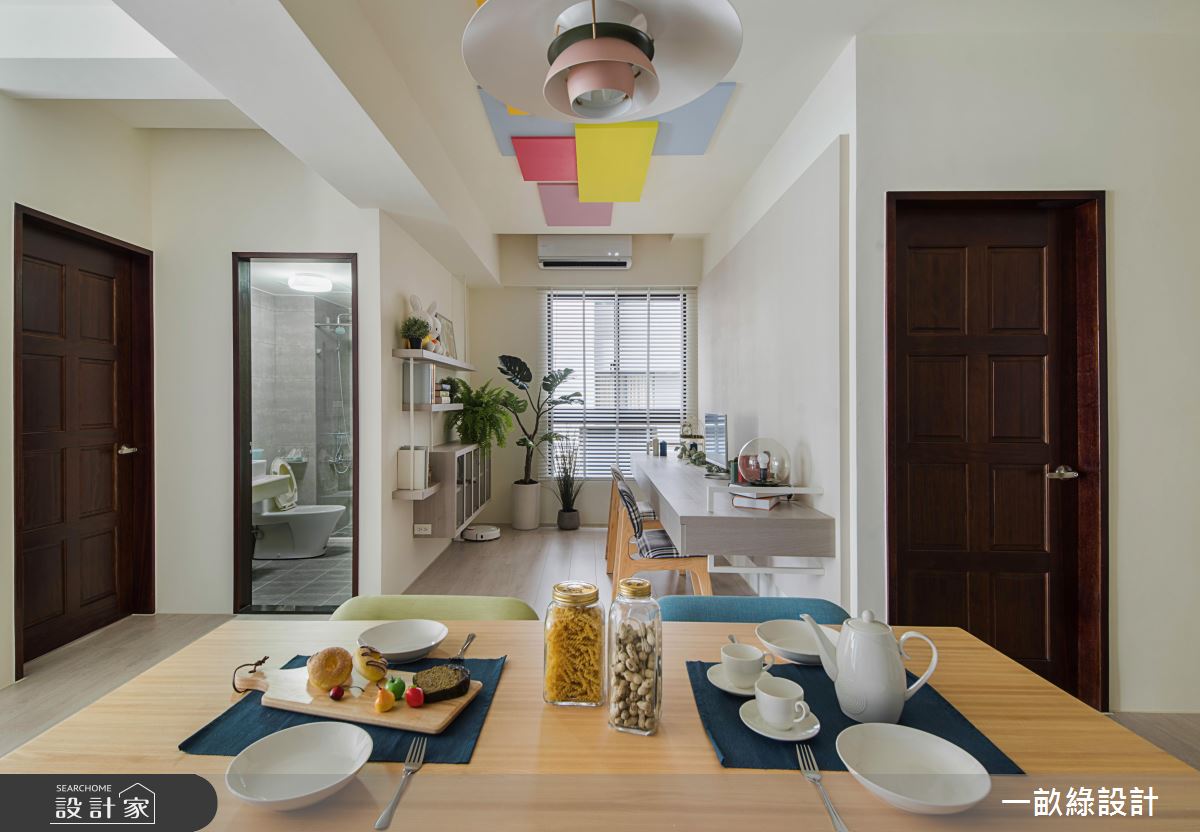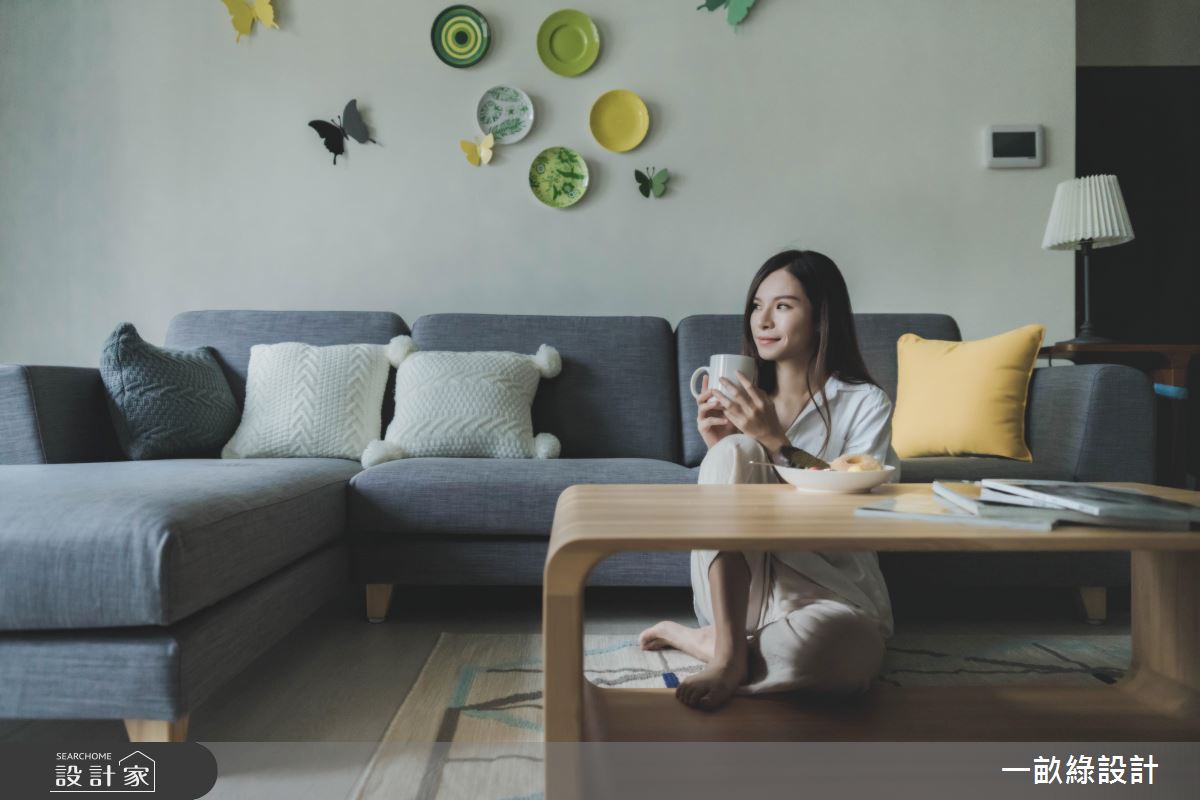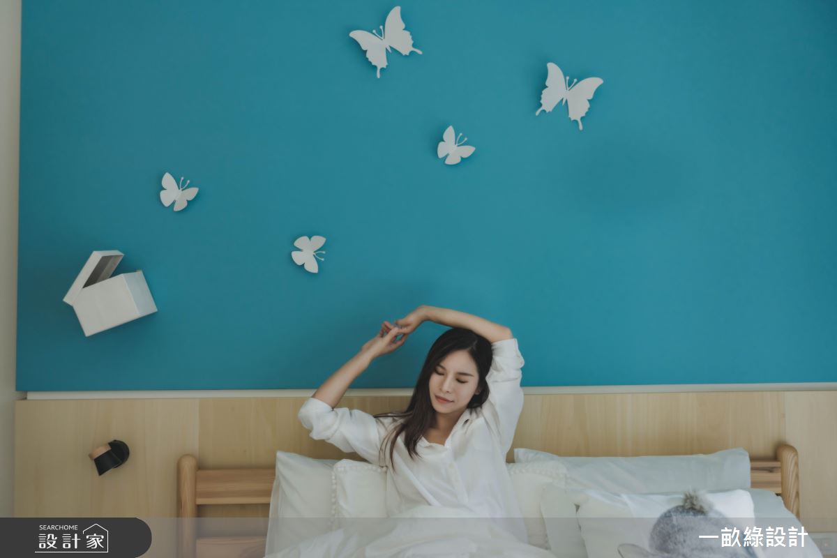 30 坪的現代風住宅,一畝綠設計利用活潑、輕快的色調,當屋主回到家時,就能夠感受到愉快輕鬆的氛圍,而客廳和臥室也加入蝴蝶壁飾點綴,彷彿在牆面上翩翩起舞,成為居家空間的驚喜亮點!