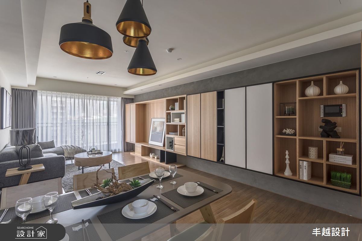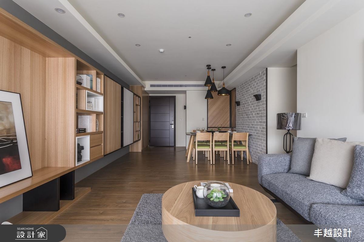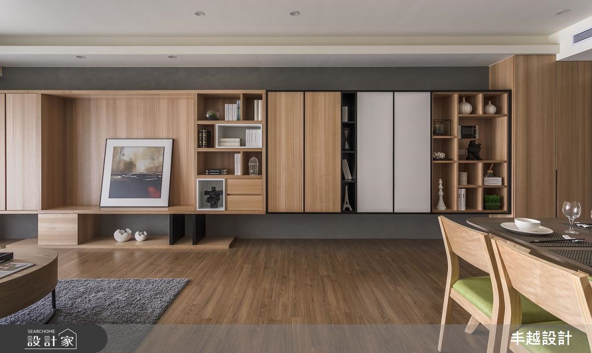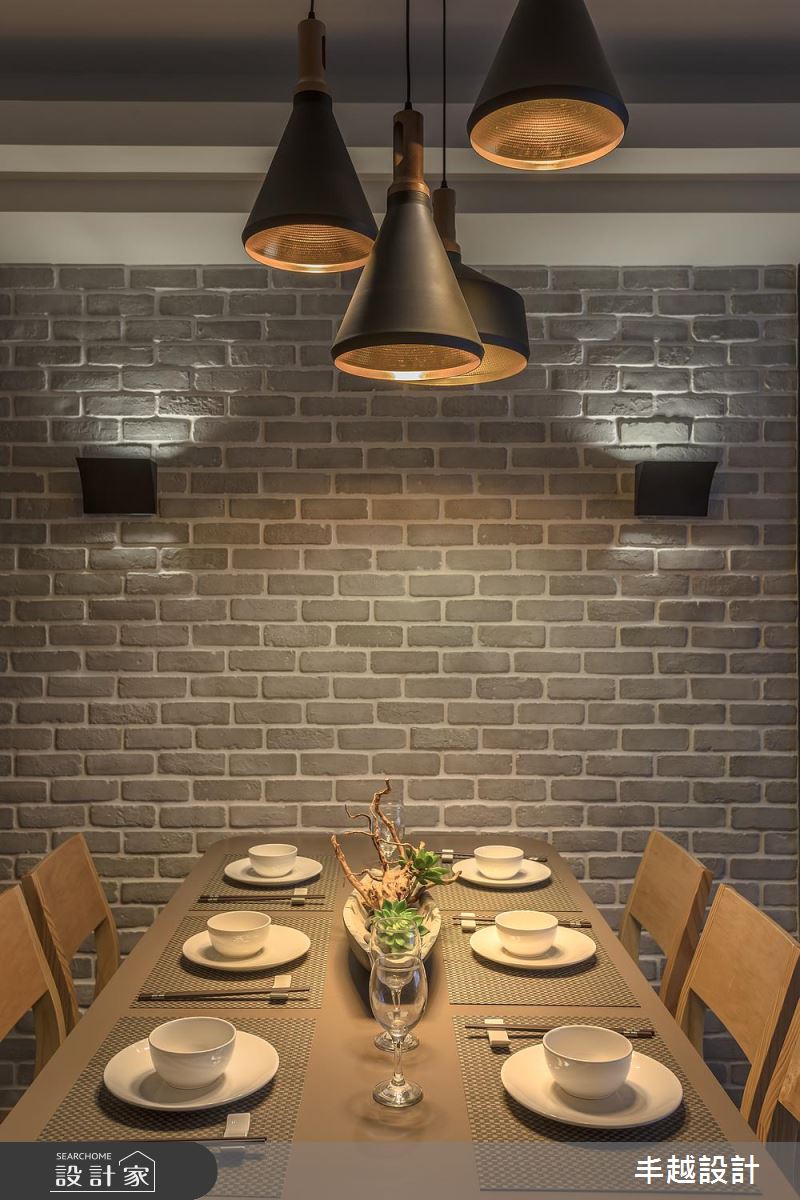 公領域讓客餐廳相互串聯,展現俐落大方的敞闊格局,並從入口處開始安排櫃體,透過連續性量體的巧構,串起整道立面主視覺,且刻意藉由封閉塊體、開放格櫃的交錯,搭佐線條的俐落勾邊,讓牆面多變不單調;餐廳、客廳之間則因著無拘束的場域聯繫,帶出一家人的溫馨互動,並以文化石為題打造牆面主景,再融入壁燈與吊燈的隱隱烘托,鋪陳簡約樸實的用餐氛圍;寢臥內,延續了整個居家的木色底蘊,讓空間回歸自然純粹,且依循需求規劃專屬更衣室,採用深色夾紗玻璃形成與睡眠區的界定,凝聚出通而不透的視覺緩衝!