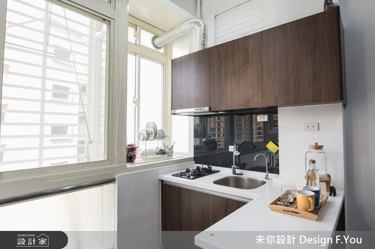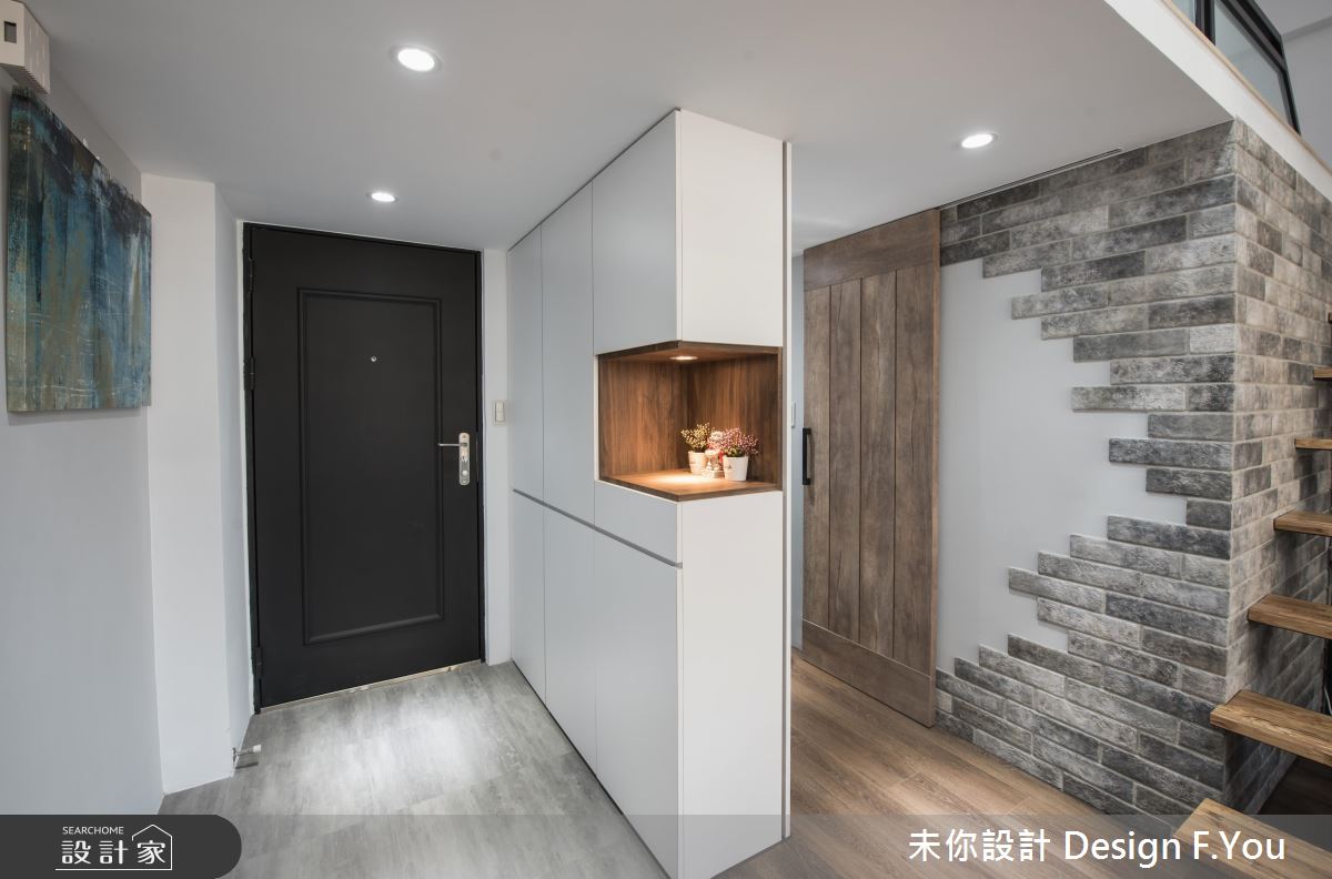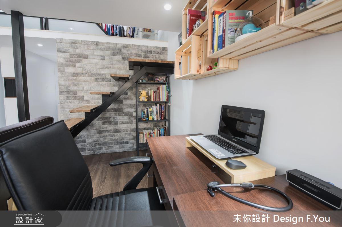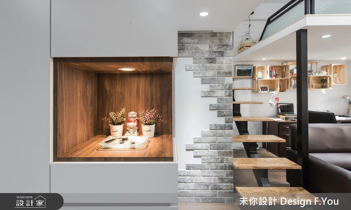 步入居家,設計師以展示台型塑框景,加強空間視覺的穿透性,並讓玄關牆面結合櫃體機能,充分運用每一吋坪效,搭配地坪材質的差異,作出完美的內外區分;居家整體以純粹色彩作為基調,搭配木作肌理與深色鐵件,加以仿舊文化石修飾立面,締造空間的獨特性格,同時給予毫不保留的採光,替室內營造放大效果;開放式書房則緊鄰於客廳沙發後方,以輕巧實用的書桌搭佐嵌牆收納展示櫃,打造出便利愜意的閱讀環境;而L型廚房的規劃,不只備齊儲物收納櫃,也促使料理檯面的延伸,一方面也可當做餐桌使用,整合多項實用機能;二樓作為私領域,運用鐵件框架出俐落線條,於側牆加入霧面玻璃,保留適度的隱私屏蔽,且除了基本的睡眠功能之外,更開闢出一小區專屬更衣室,滿足私人物品和衣物的收納!