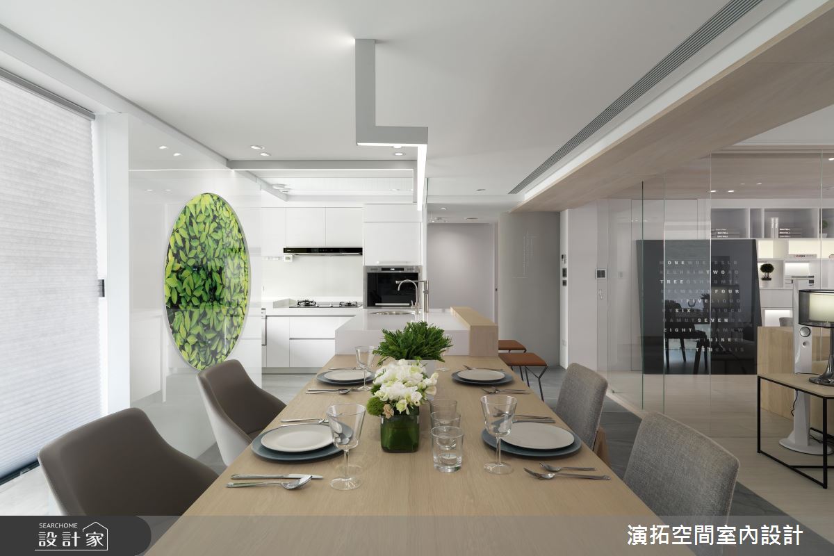 改造後的房子,像是設計旅店般時尚又舒適,擁有清新又明亮的空間質感,讓人十分驚豔。設計師打破格局的界線,透過格局的重整,讓光線更能充沛的分布室內,也改善了通風條件,促進了空間的流通,客廳後方的書房運用透明玻璃隔間,去除了既有的格局封閉感,讓視線可以穿透,整個空間就有被放大的效果,也因為全家人都喜歡看書,設計師將書桌延伸,一家人便有了可以一起閱讀、活動的空間。除了美觀設計之外,開放式的廚房也加設燒水燈、漏水、一氧化碳偵測器,兼顧居家安全的考量,另外全室也裝設除溼系統,大幅度地提升空間的舒適度。
