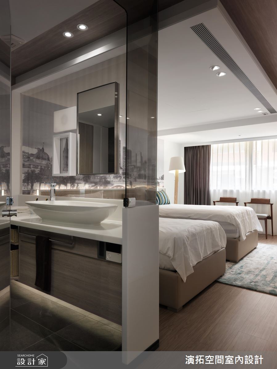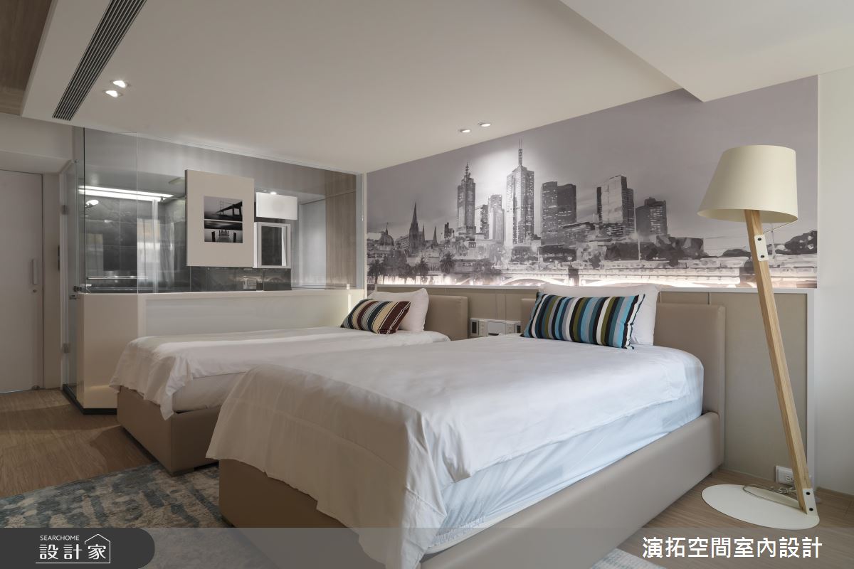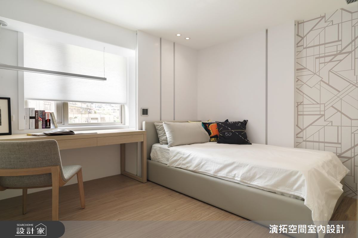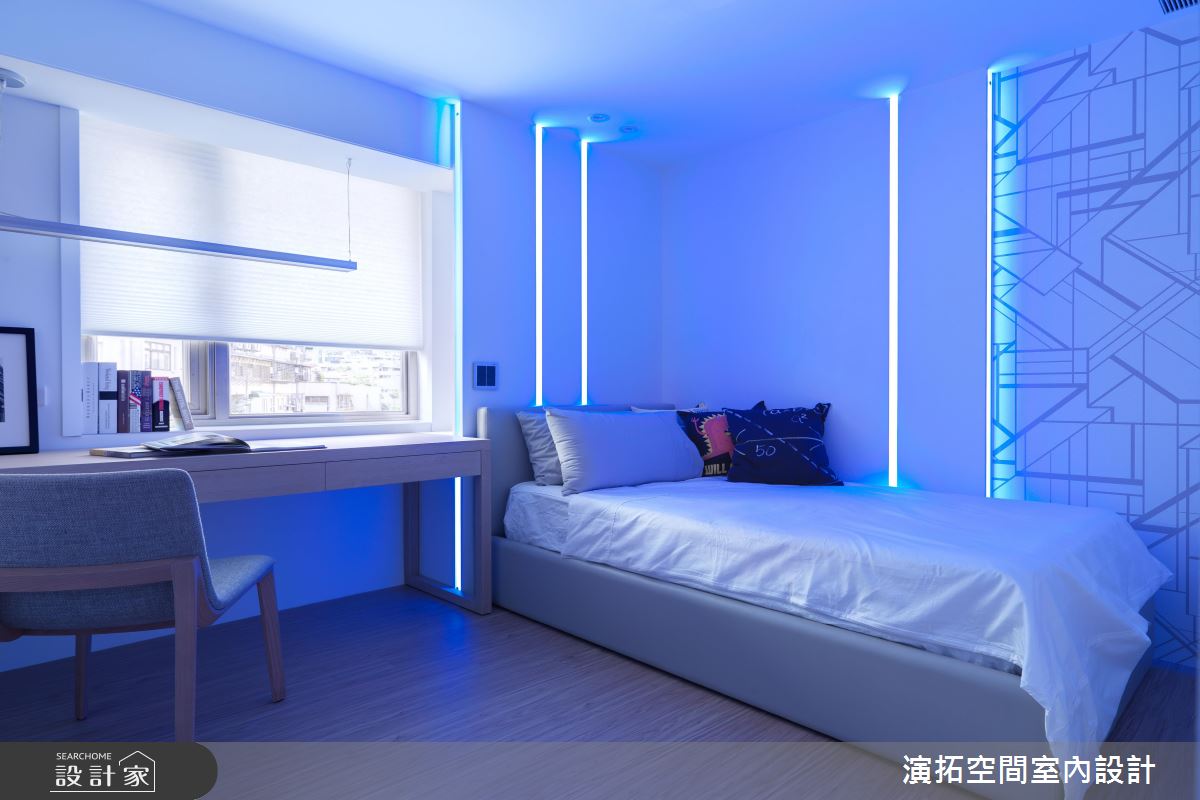 舒適的臥室質感,宛如入住國外的設計旅館,因應屋主小孩喜歡科技感的設計,設計師在小孩房的燈光中加入了藍光設計,滿足孩子的奇幻異想。