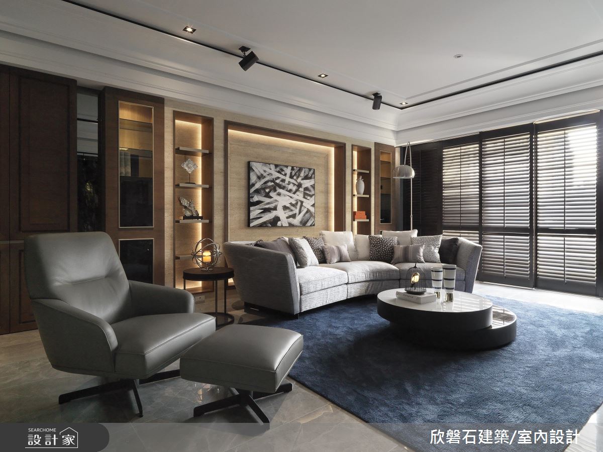 壯闊的山水潑墨畫作成為空間的一抹驚嘆,伴隨深藍地毯舖陳,鮮明的石材肌理描繪,以及藝術品的風格展示,擘劃出氣度非凡、旅店風格般的宅邸,讓家不僅是休息的地方,更是欣賞人文、陶衍性情的風格場域。