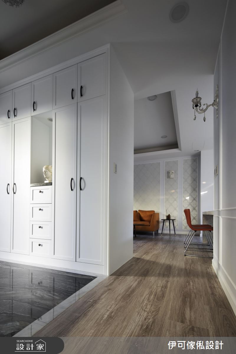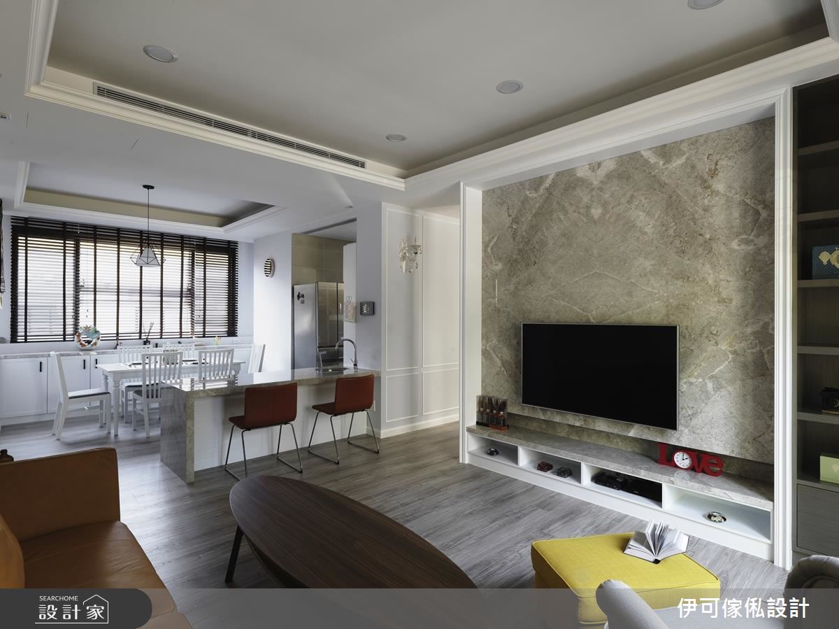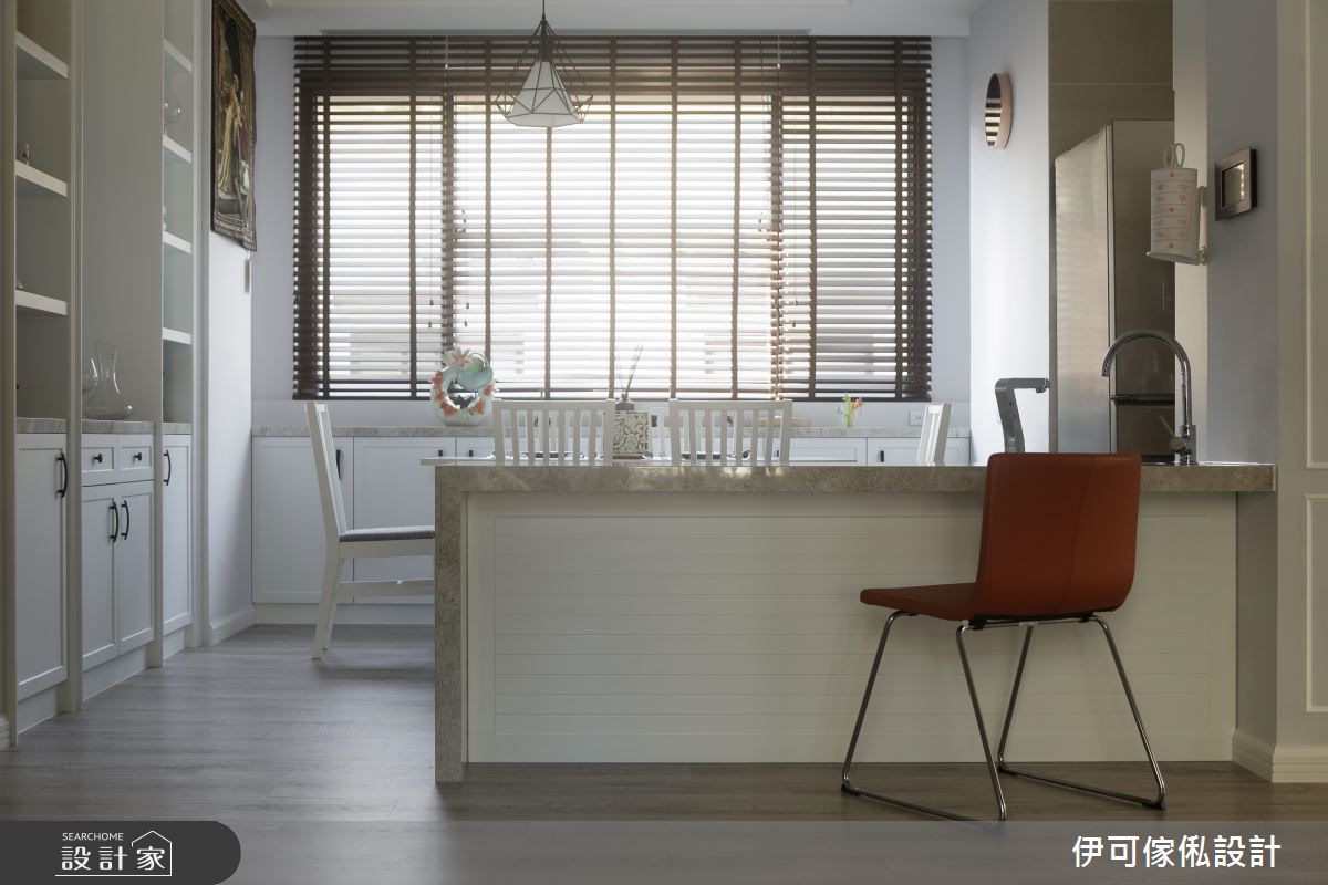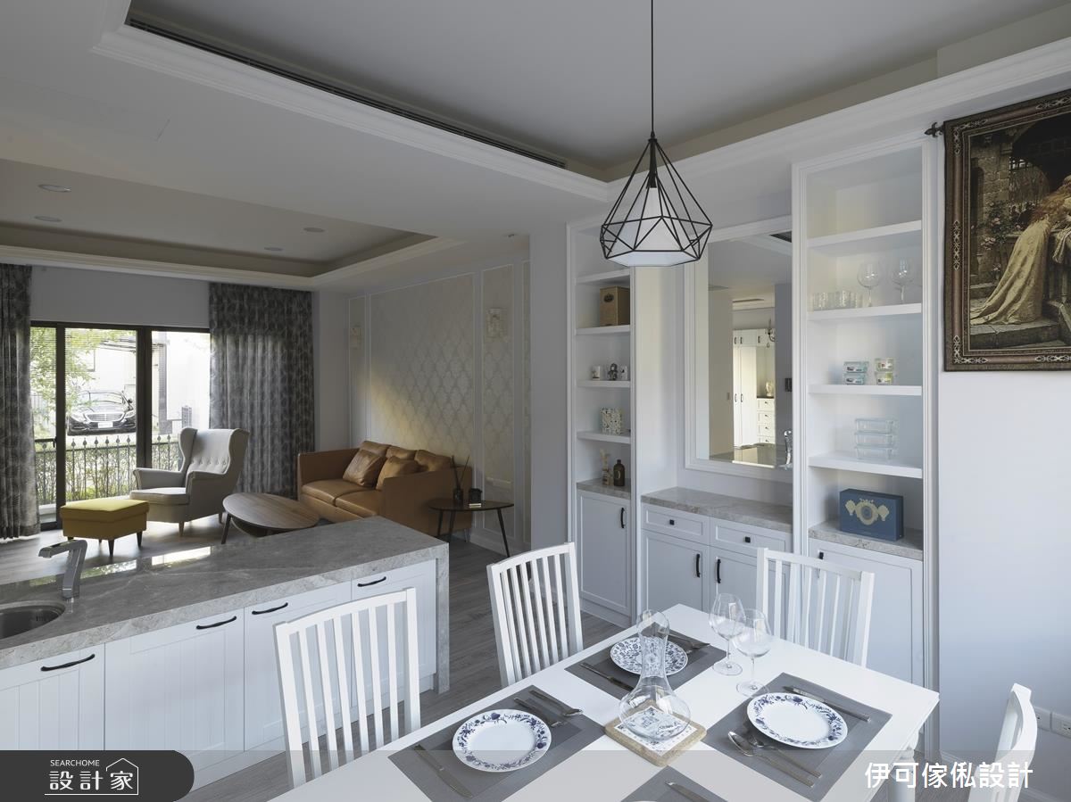 公領域選用內斂輕盈的建材,結合現代美式與維多利亞元素,避免繁複而壓迫的設計,客廳落地窗旁則陳設單椅並緊鄰庭院,替室內納入舒暢綠意,成為男主人最愛的休憩角落;餐廳區呈現開放格局,且因應家中孩童便利使用,特別降低中島檯面,呈現與餐桌相符的高度,無論是料理、備餐、孩童寫功課等都適用,聯繫一家人之間的緊密互動;私領域則各自依循家族成員意見,給予不同風格混搭,除了讓明亮的採光條件分佈於每個角落,每一間房更賦予實用的紮實機能,開啟機能、風格兼具的生活型態;小孩房刻意採用衣櫃型構界定,劃出遊戲與睡臥區,即便未來兩個小孩分房,也能個別坐擁獨立空間!