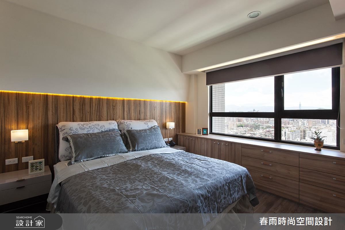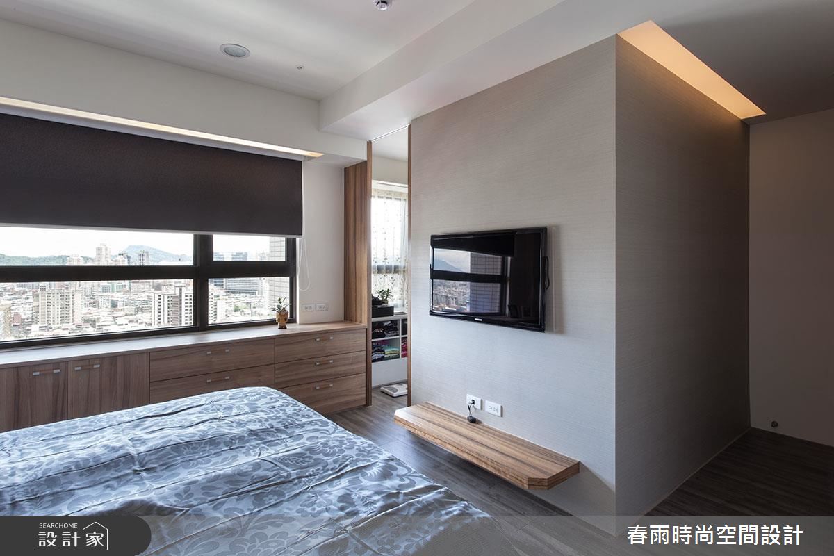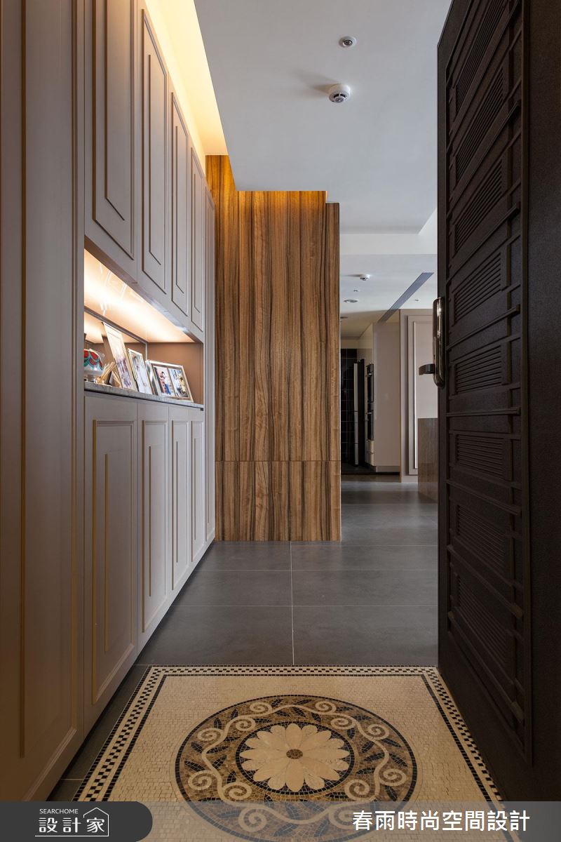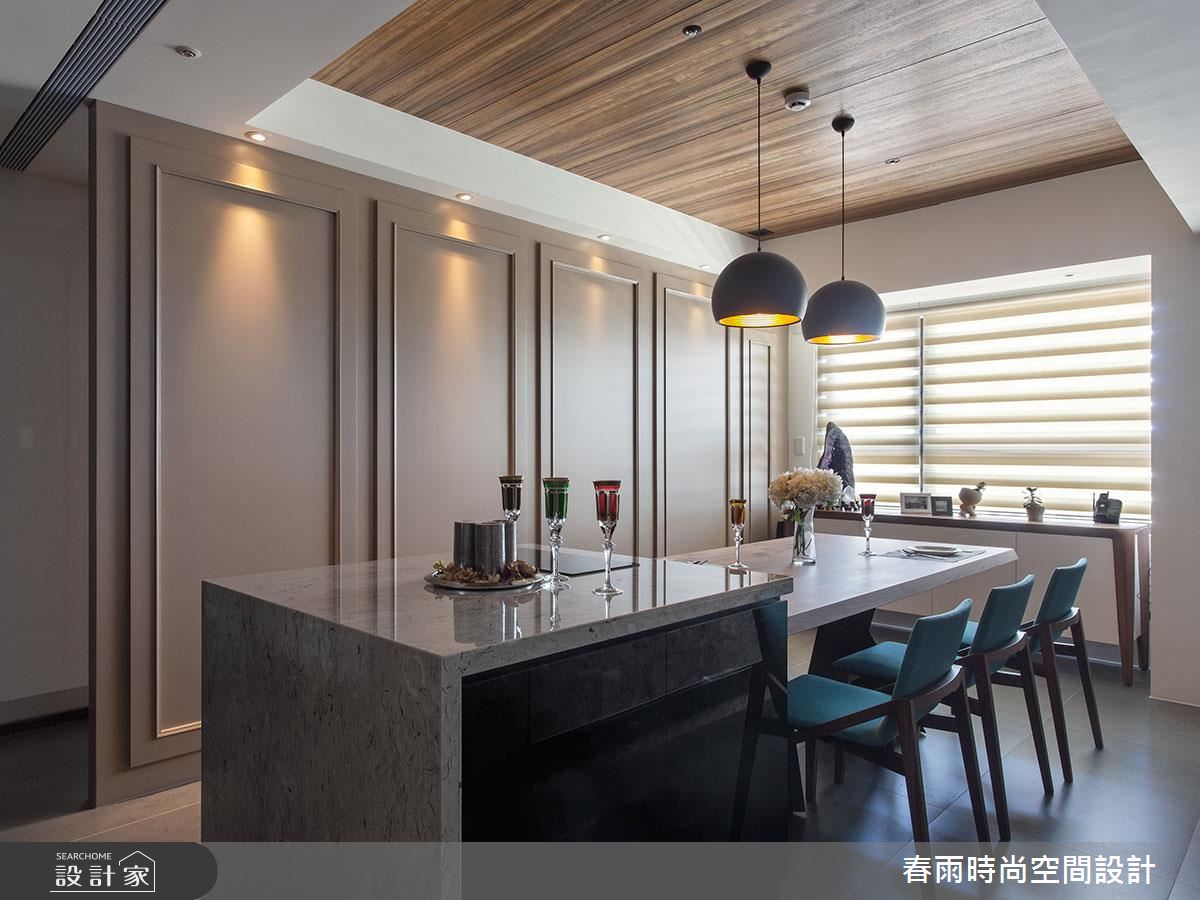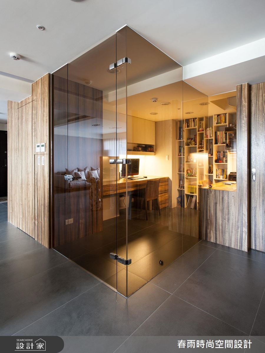設計師在細節裡融入了女主人喜愛的新古典風格,玄關鞋櫃、餐廳主牆皆選用了溫雅的藤色漆面處理,成為空間中典雅細緻的端景,搭配濃郁的木作貼皮、深色地磚等元素,營造出屬於現代風的沉穩大器。電視牆後方可做為用餐區的展示收納,另一端也加上兼具餐櫃功能的中島設計,使輕食料理的準備更加便利。書房隔間則改以茶玻設計,讓整個空間成為透亮而有隱私的玻璃盒子,具有放大空間的效果,內部並搭配充沛的收納設計,無論書籍或是文具用品,都能夠整齊收儲。私領域依照不同的居住者個性,量身訂製專屬的風格色調,同時附有齊備的收納機能或更衣室等,提升寢臥空間的舒適和便利度。