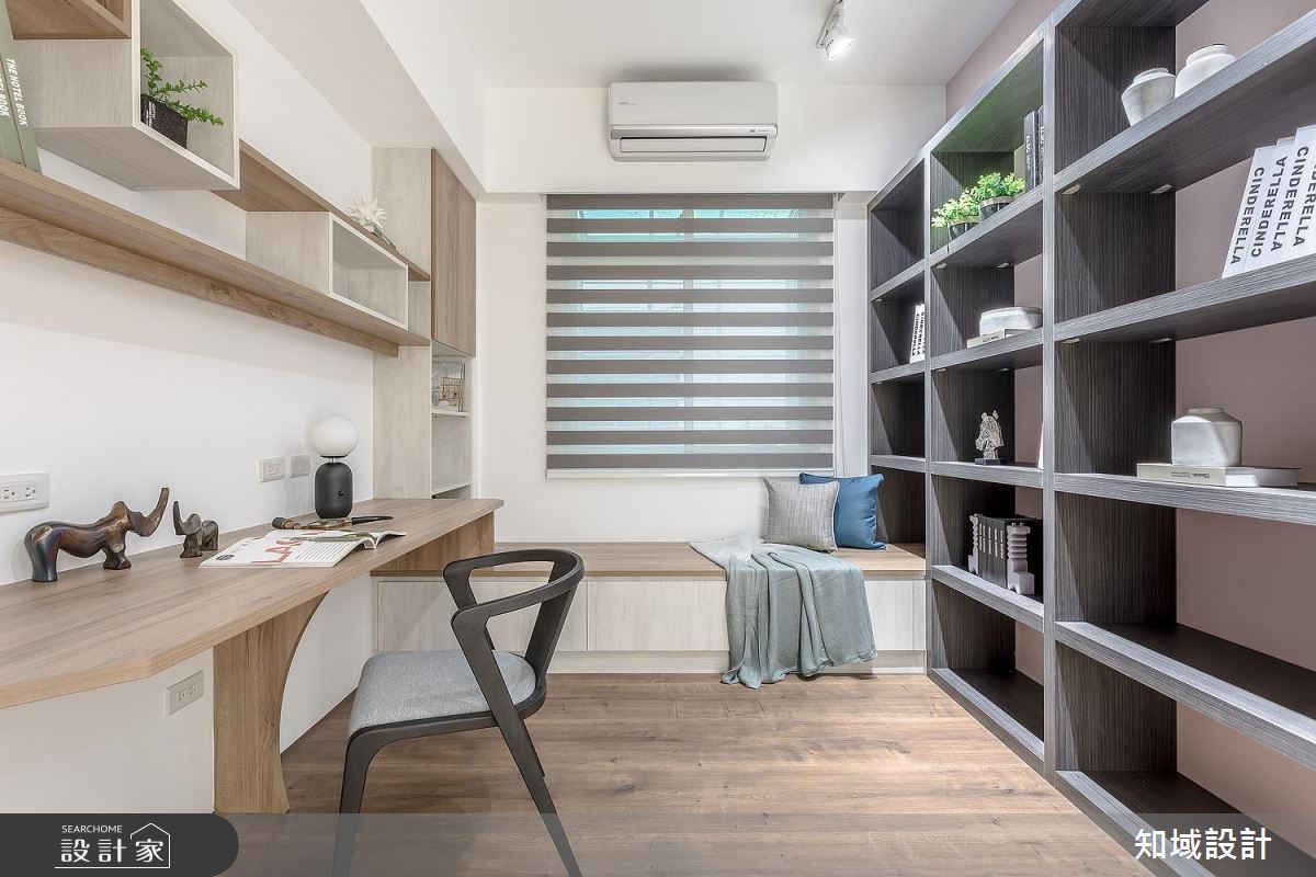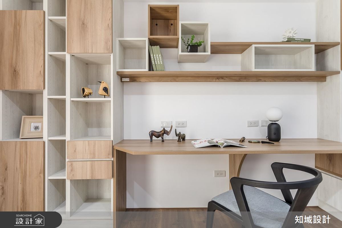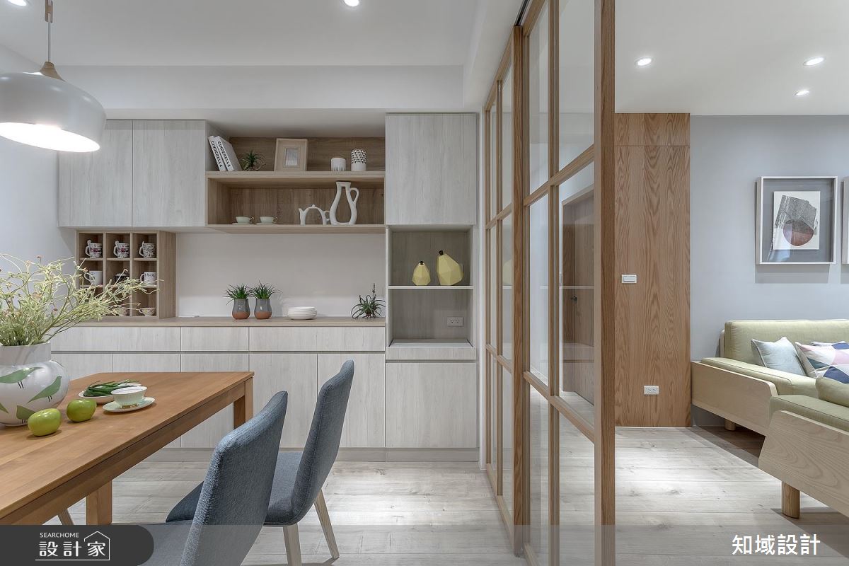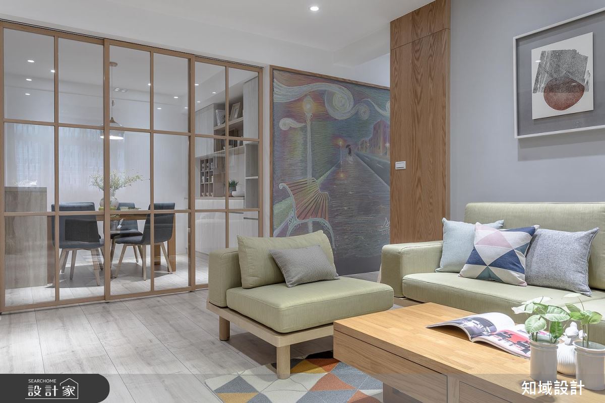 設計師首先以格局微整改善老屋動線,以全開放設計串連公領域,針對長輩在意的開放廚房導致的風水與油煙疑慮,則利用清玻拉門完美解決問題。接著,在風格統合的溝通上,融合丈夫喜愛的自由簡約與妻子鍾情的溫潤自然,打造了帶著清新無印色調的北歐風格。公領域利用灰階色調搭配色調輕淺的木皮以及亮麗的幾何地氈,佐以黑板漆的運用,讓有著繪畫興趣的女主人擁有自由發揮的空間。獨立書房結合客房與休閒功能,不僅維持隱私,更提供充足的收納用度。
