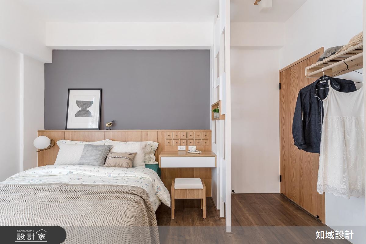 主臥採用大量木元素回歸簡約無印風格,為了女主人的飾品收納,設計師貼心將床頭結合格狀小抽屜,滿足細部收納。
