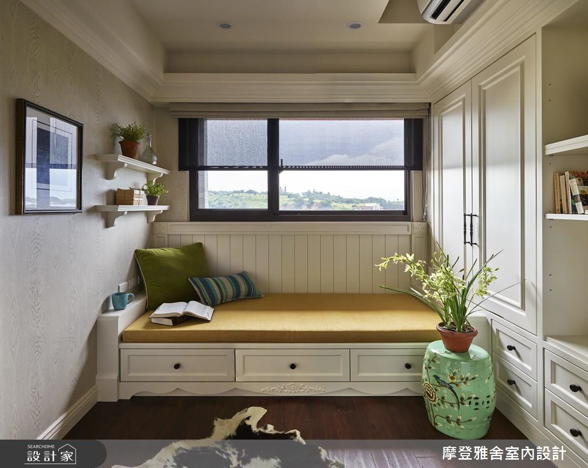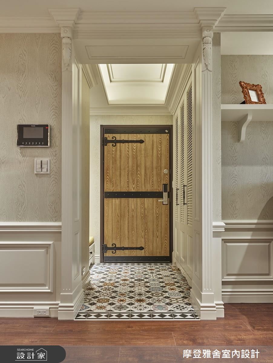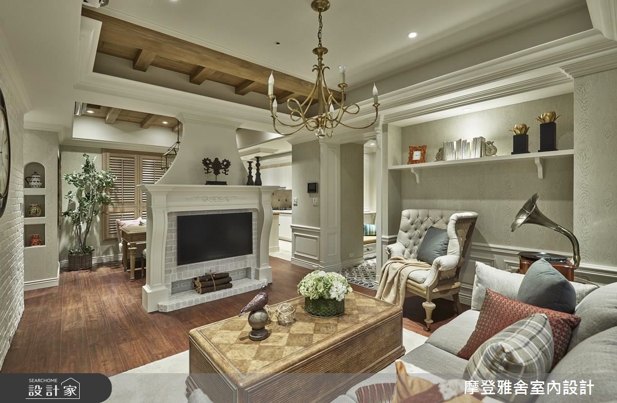設計師打開客餐廳的界線,透過半開放電視牆的座立,導引餐廚、客廳之間的流暢動線,營造一家人之間的生活互動樂趣,沙發後方則運用窗面引入採光,並規劃一面展示書牆,讓客廳也容併閱讀書房功能;同時採用線板與挑高作法修飾天花板,搭配木質包覆樑柱,締造場域之間的各自界定;餐廳區在木造天花、木百葉窗的包覆之下,充斥溫潤氣息,從細節到風格皆完整到位,古銅金色的吊燈更與客廳主燈相互呼應,恰如其分地顯出微奢華的魅力;主臥內,則在一派白色主題當中寄寓質感內涵,藉由精雕的線板疊砌壁板與天花,顯現細膩氛圍,搭配沉靜的壁紙色調,詮釋使用者的優雅品味!