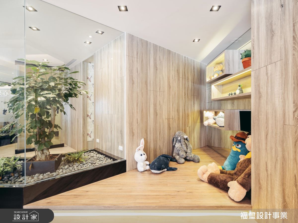 在空間配置上,設計師額外打造出一處幼兒遊戲區,不但以清透玻璃創造寬敞視野,讓空間感更為開闊,也讓角落位置不再浪費,發揮機能意義!