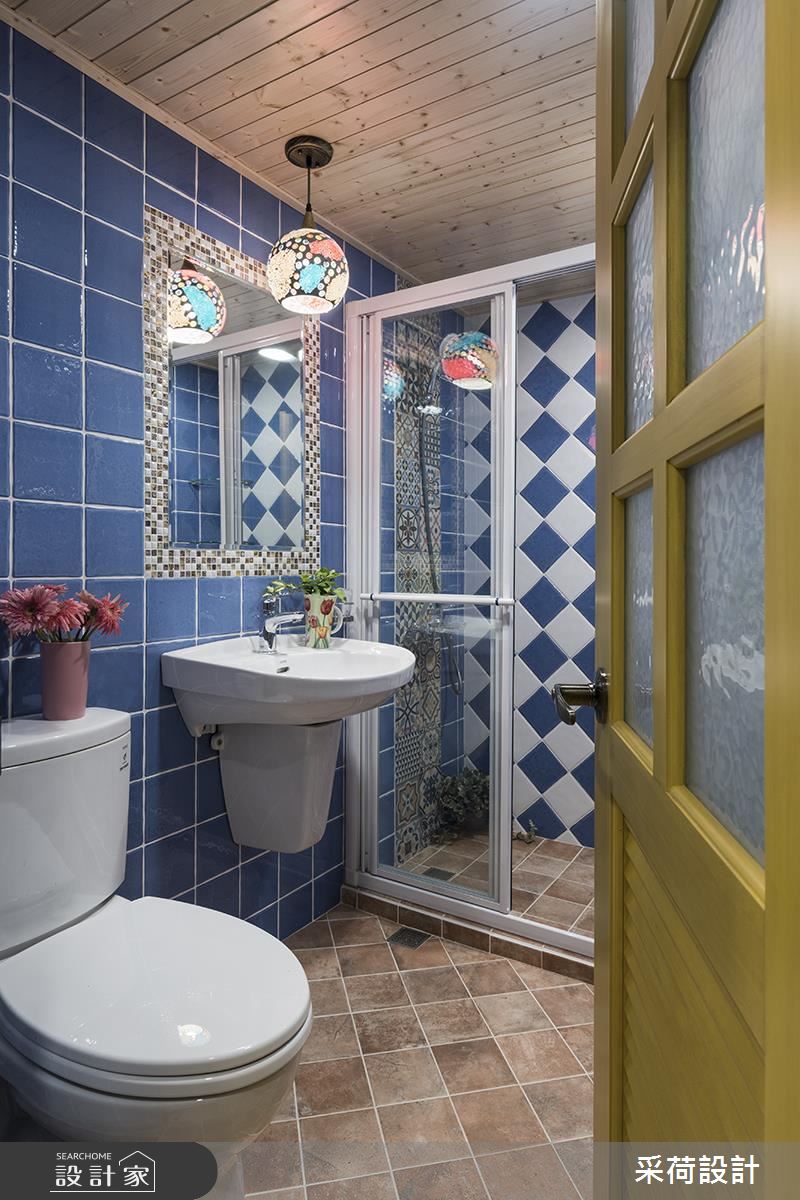 採乾濕分離的衛浴空間,特別換上歐式門片,設計師也利用不同色彩的方格磚與花磚混搭裝飾,讓衛浴空間更具有藝術的豐富層次。