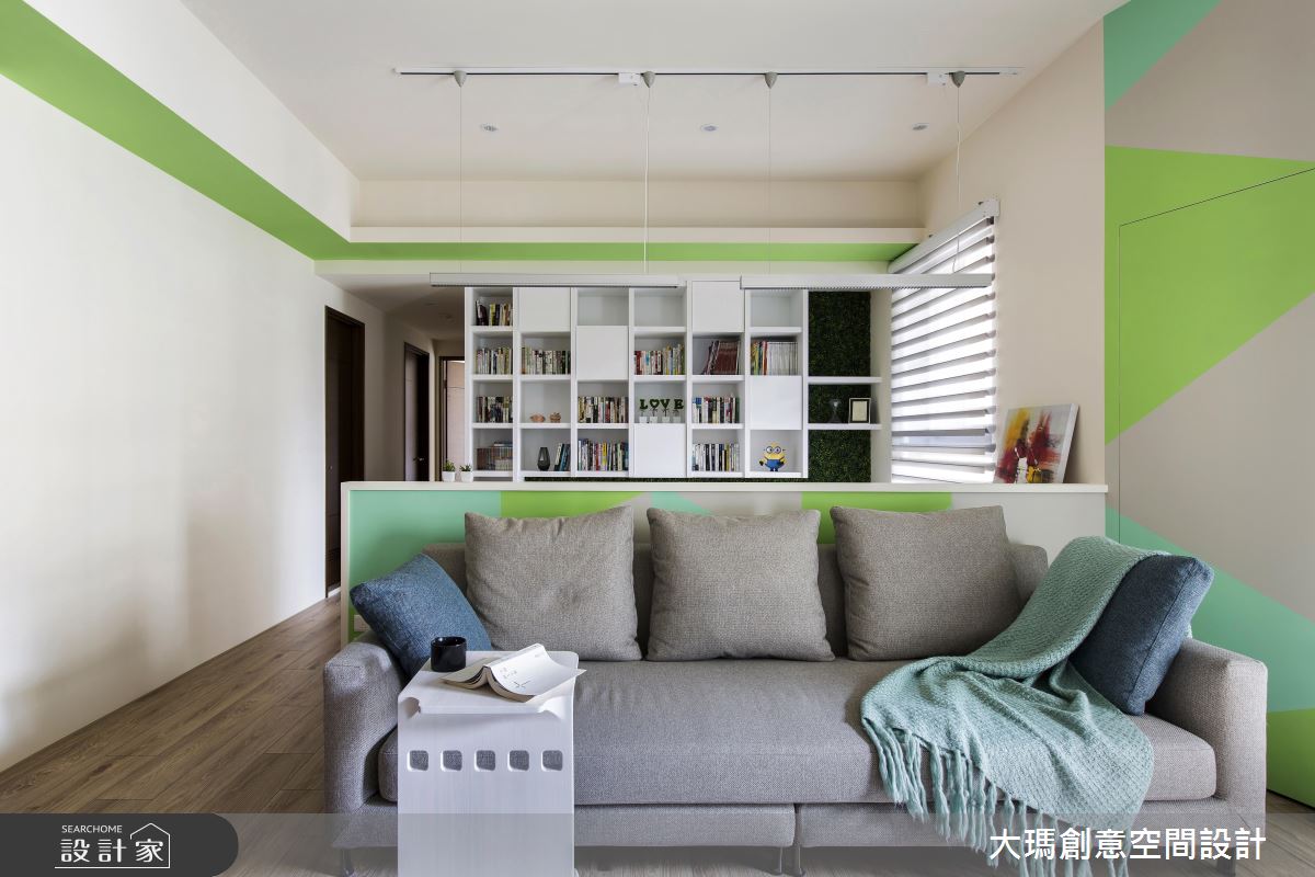 以北歐風定調的 25 坪居宅,設計師以木質、純白為色彩基底,加上草綠、薄荷綠等色階的幾何圖形,營造出清新療癒,也十分有特色的居家,讓從事科技業的屋主,一回到家就能很放鬆!