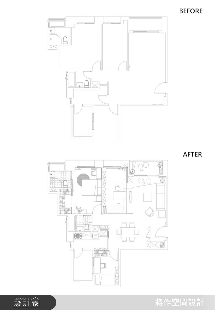 如何在格局不變的前提下,打造開闊通透的空間感受,是眾多家庭的疑問,將作設計在開放空間利用天花板層次與機動性拉門,為一家 3 口創造無邊視野!