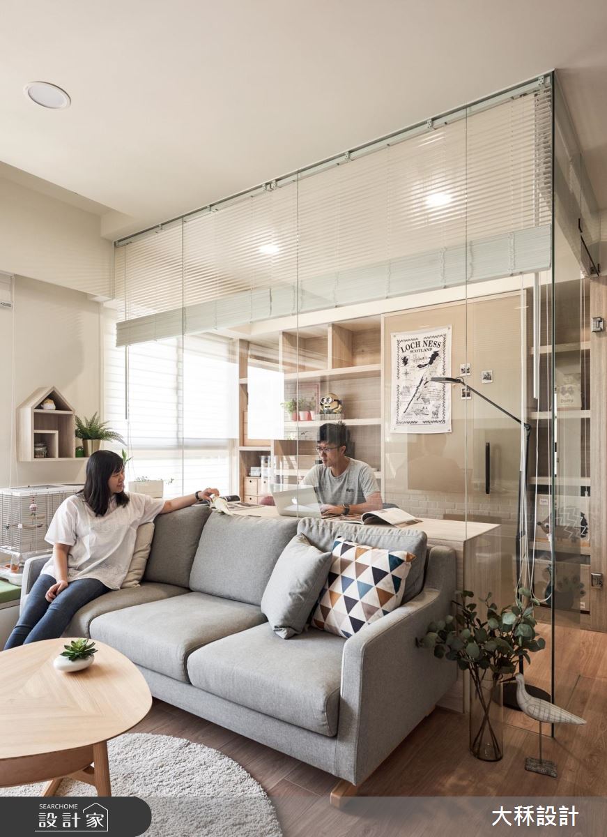 由於屋主的寵物是一隻鸚鵡,平常也會在家裡自由活動,因此 25 坪的休閒北歐風住宅,在設計中融入了鳥屋的概念,並運用了大量木質元素和清透玻璃隔間,讓整體空間感更加開放敞亮。