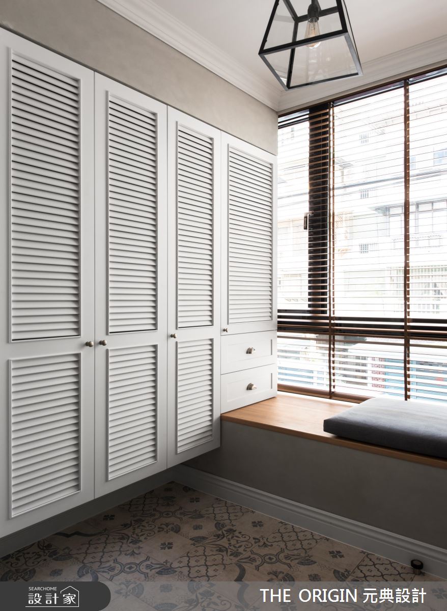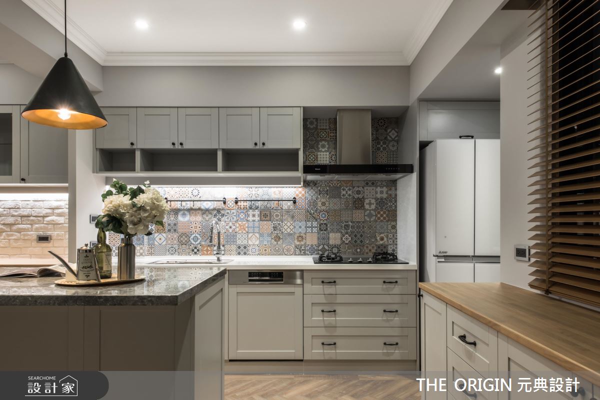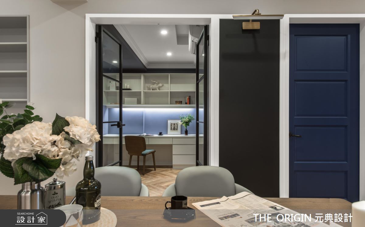 甫入門,即可見玄關拼貼復古地磚,同時安置一座白色百葉鞋櫃,凝聚略帶鄉村的質樸況味,搭配穿鞋椅兼臥榻的設計,讓入口印象顯得閒適而放鬆;空間內,則利用人字拼木地板串聯全室,在灰色、深藍等地鋪敘之下,凝聚自然休閒之感,並妝點文化石花磚等特色壁材,散播高雅的異國氣質,同時整合立面,讓電視牆、餐櫃、廚具設備等一路銜接,其間安置展示空間,帶出整道牆面的趣味層次,而另一側牆面則統整門片表情,在藍色的揮灑之中,型塑優雅的一致性;同時在有限的空間,加入開放式餐廚規劃,打造出實用延伸中島平檯,一來整合機能讓使用更具彈性,二來也能作為視野上的開放延伸;書房與寢臥則個別加入淺灰藍色,運用白色的櫃面與簡約線板勾邊,展現細緻從容的居室氛圍!