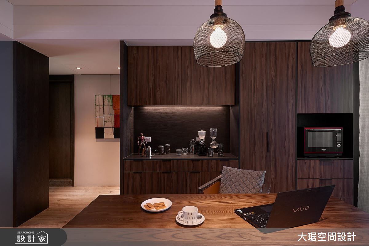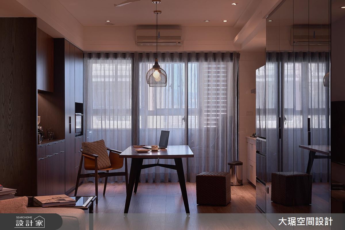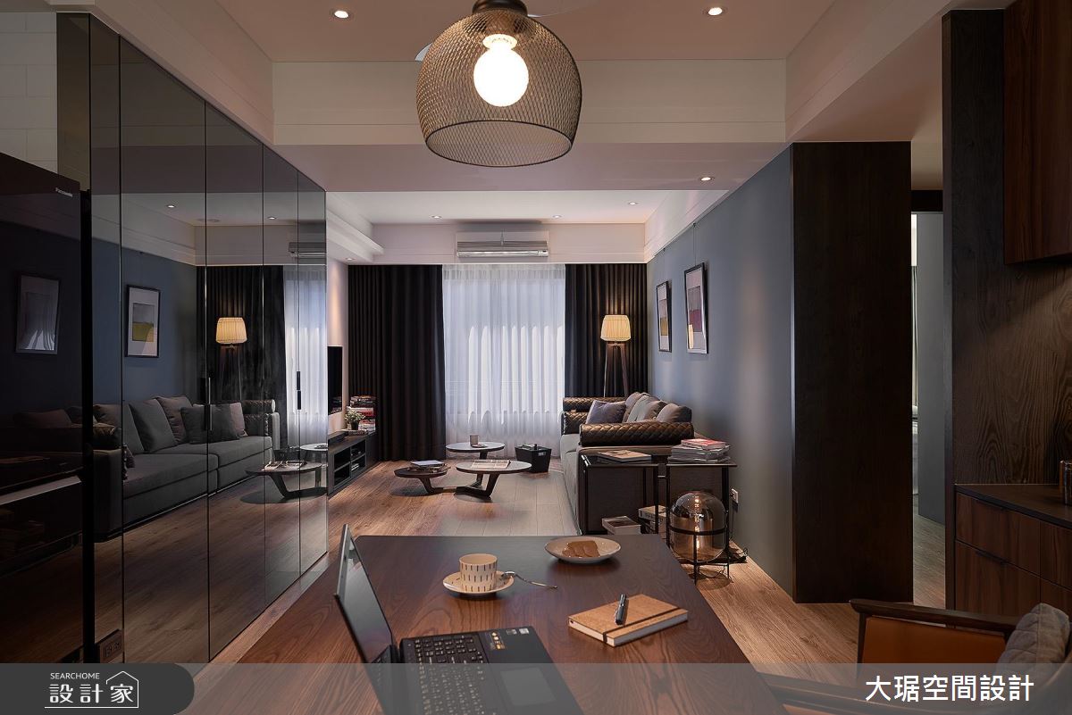 為了實現「精品飯店」的現代休閒風格,先是將三房調整為兩房,釋出更多空間到公領域;開放式的室內格局裡,大量的木紋鋪敘,形塑沉穩、溫潤的居家氛圍,並藉由落地窗引入充沛採光,讓空間更顯寬敞、休閒;且加強收納機能,透過整面灰鏡質材的櫃體打造,挹注時尚精品質感。
