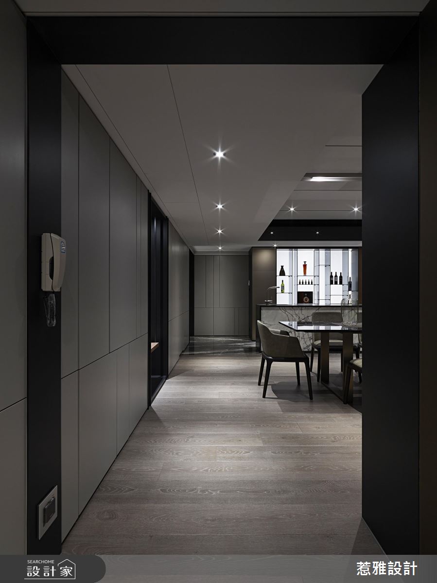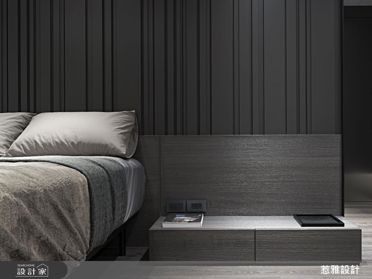 私領域內亦延續幾何語彙,於立面做出細緻線條,在穩重的低彩主軸之中,刻劃俐落有型的牆面風采!