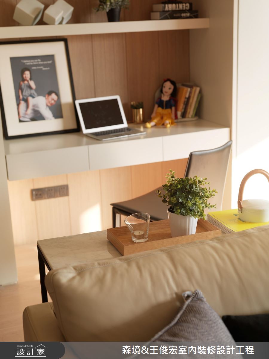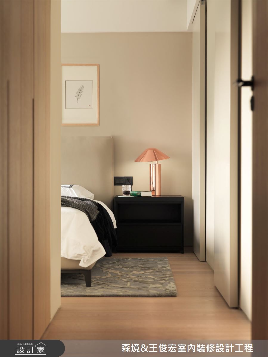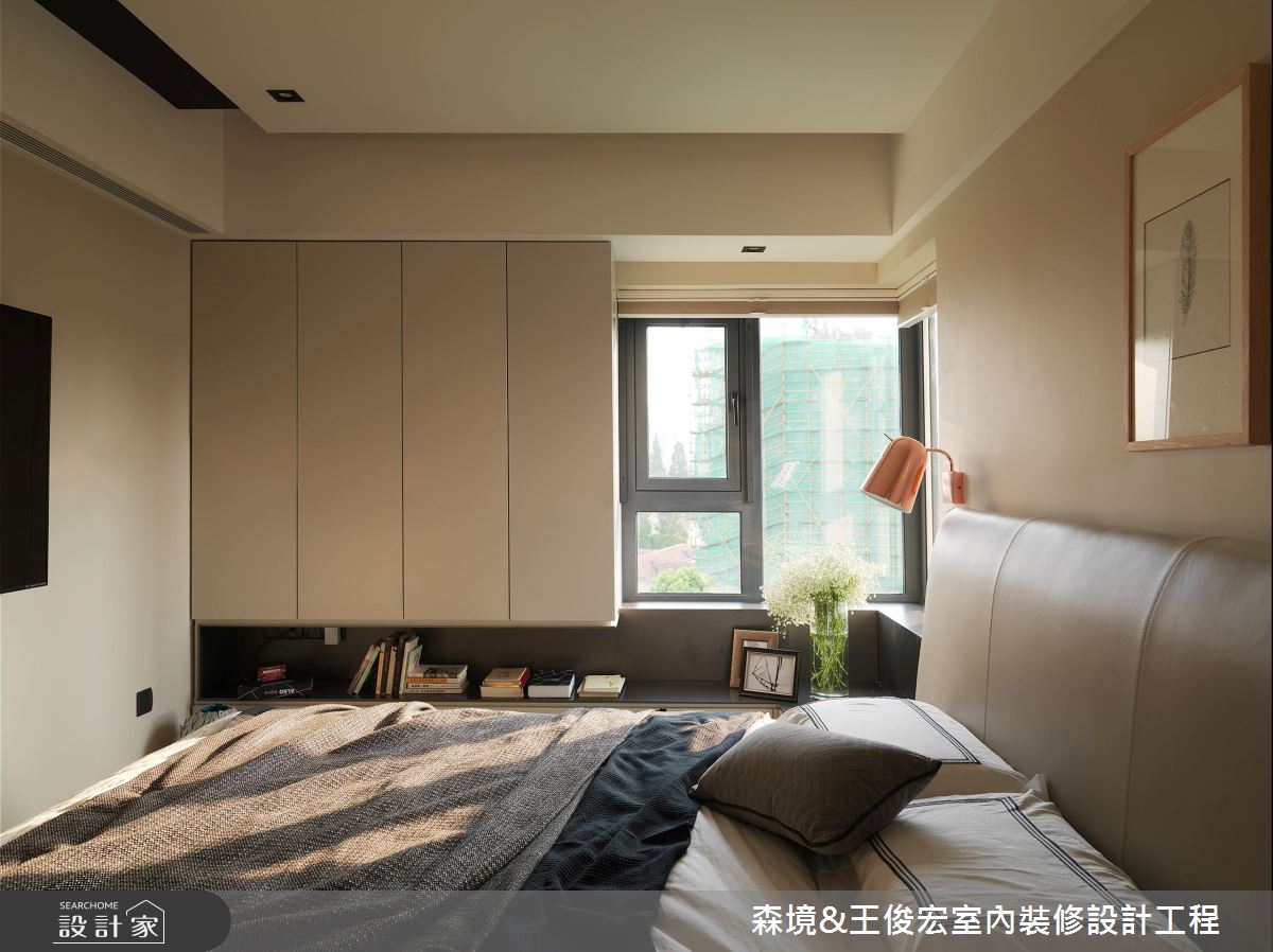 私領域臥房也強調複合設計,將床頭櫃延伸至極致,結合不做滿的收納吊櫃,既兼顧收納、展示機能,同時不影響採光與整體美感,讓一切生活功能獲得滿足!