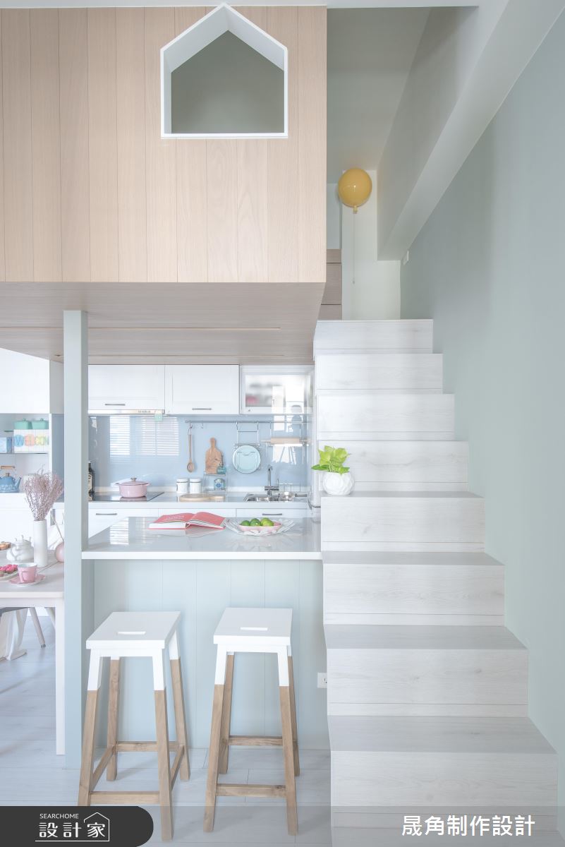 坪數雖然不大,但不代表生活就得處處受限!這處為小家庭打造的 15 坪北歐風樓中樓,經由晟角制作的規劃改造,設計師減去了複雜厚重的設計,並以柔和甜美的色調,以及輕薄的鐵件造型,營造出輕盈又舒適的空間感,讓小空間也能很好住!