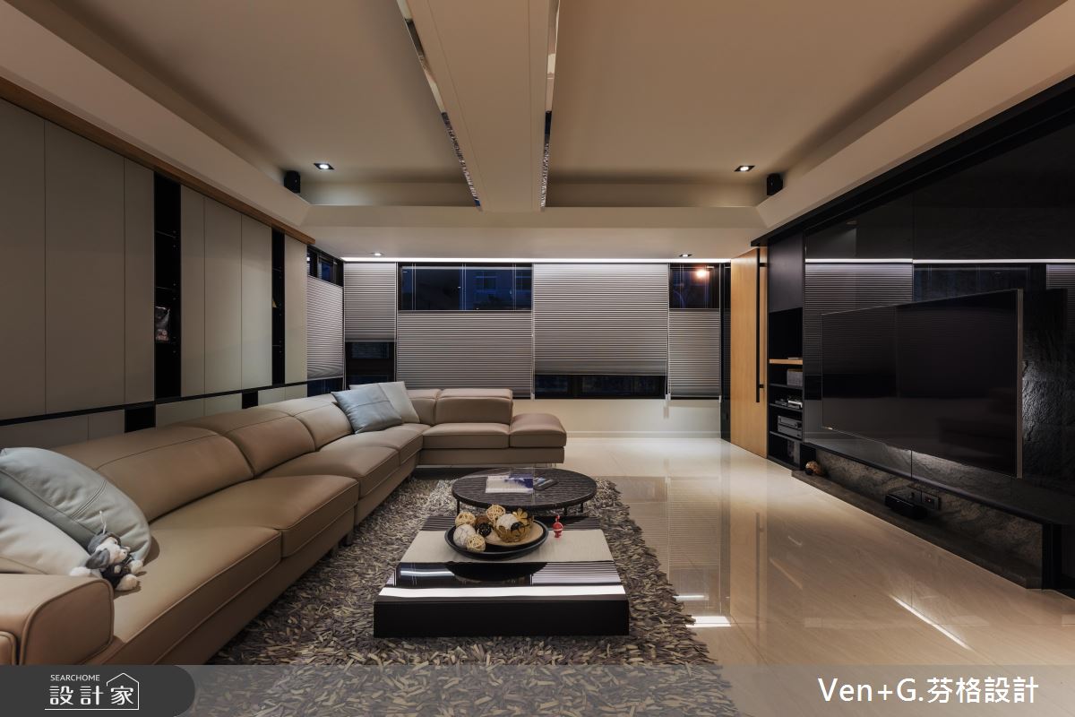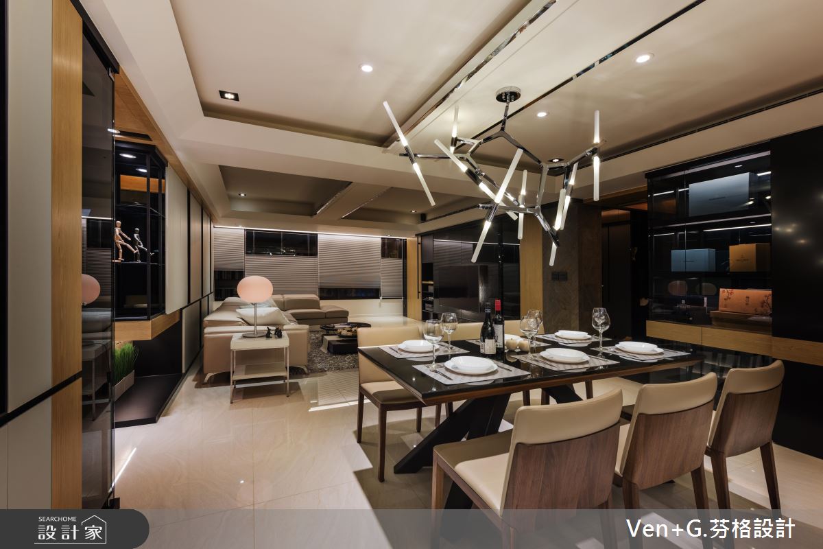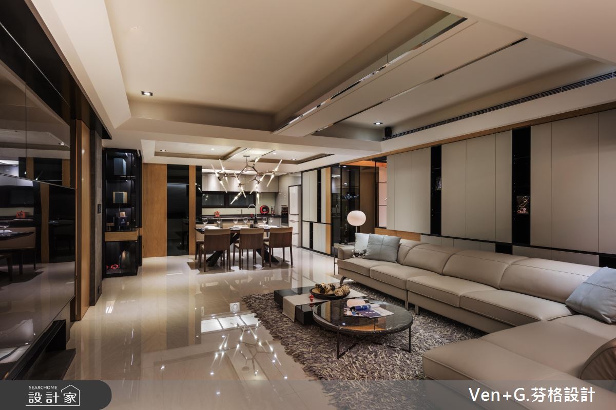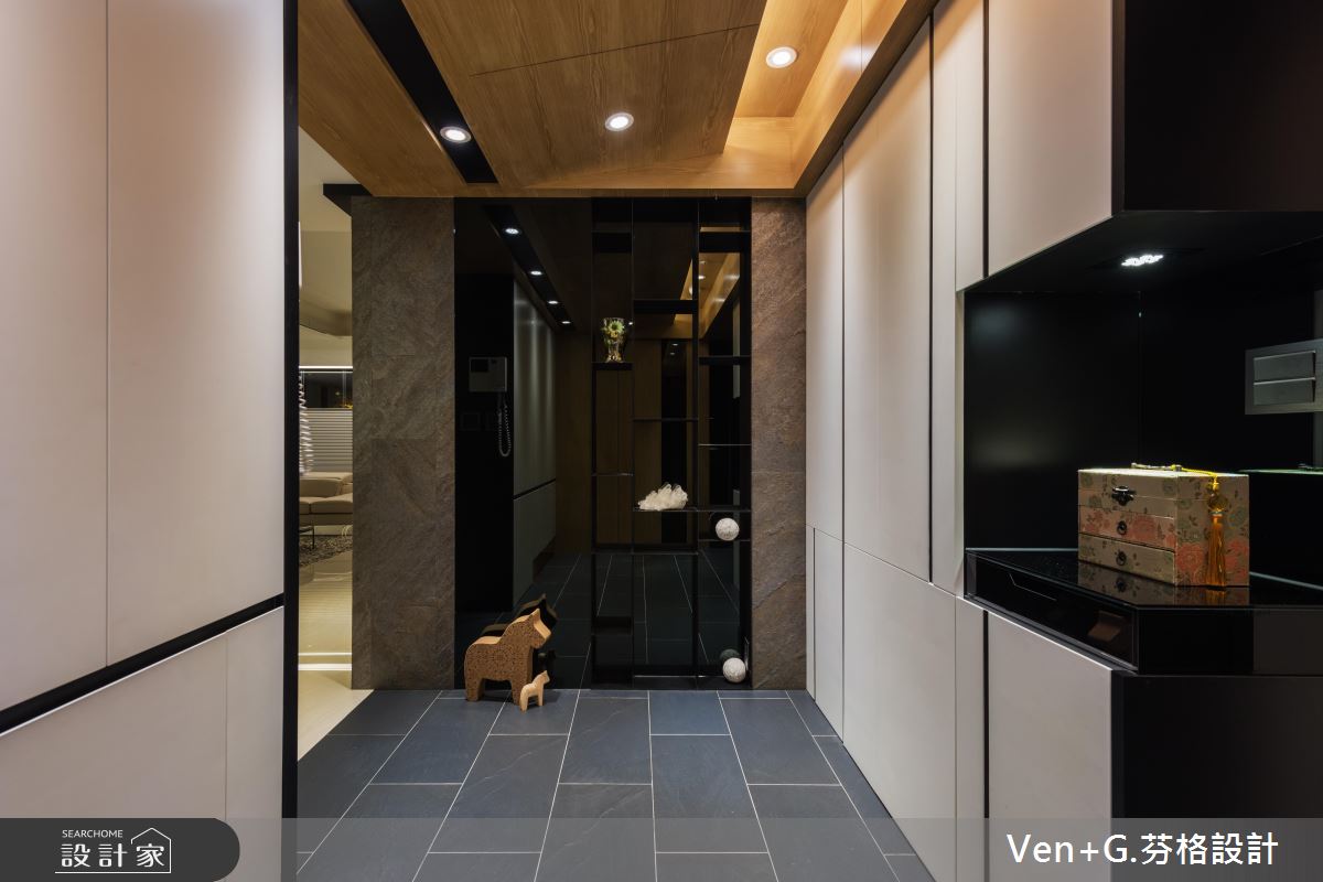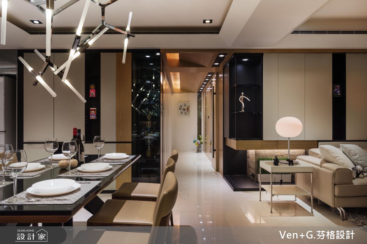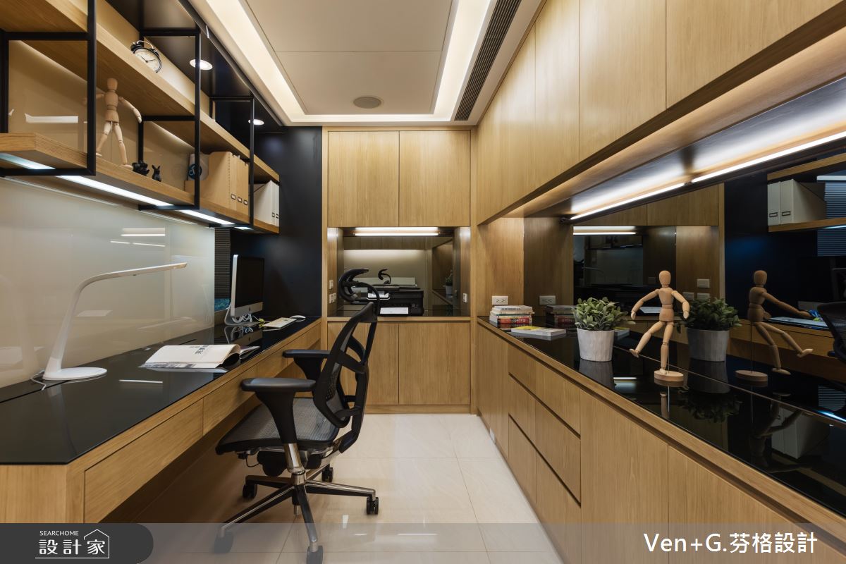 首先為改善通風,將廚房重塑為開放設計,引入後陽台光源、打開對流,同時解決採光不均的困擾。接著,針對收納不足的問題,公領域以機能結合美觀,玄關即利用俐落的黑白色系打造時髦的跳色櫃體,同時兼具大量收納容量。設計師更為了屋主與一雙子女設計寬裕的共處環境,公領域以實木、鐵件、黑鏡大量不同色調的建材混搭,利用縱橫線條與塊狀結構,讓視覺不顯雜亂,創造屋主喜愛的飯店風格質感。大書房則是特意為屋主打造的私人空間,有著溫潤的木色與充裕的收納機能,滿足辦公、閱讀的喜好。