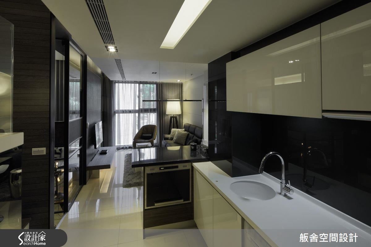由於空間有限,所有機能設備需要完整規劃,顏善松設計師認為,現代科技的便利,讓許多電器都能一機多用,考量現代人的生活習慣,將餐桌功能以中島取代,讓兩夫妻可以靈活運用餐廚,而開放式的手法也讓小空間更顯寬敞。