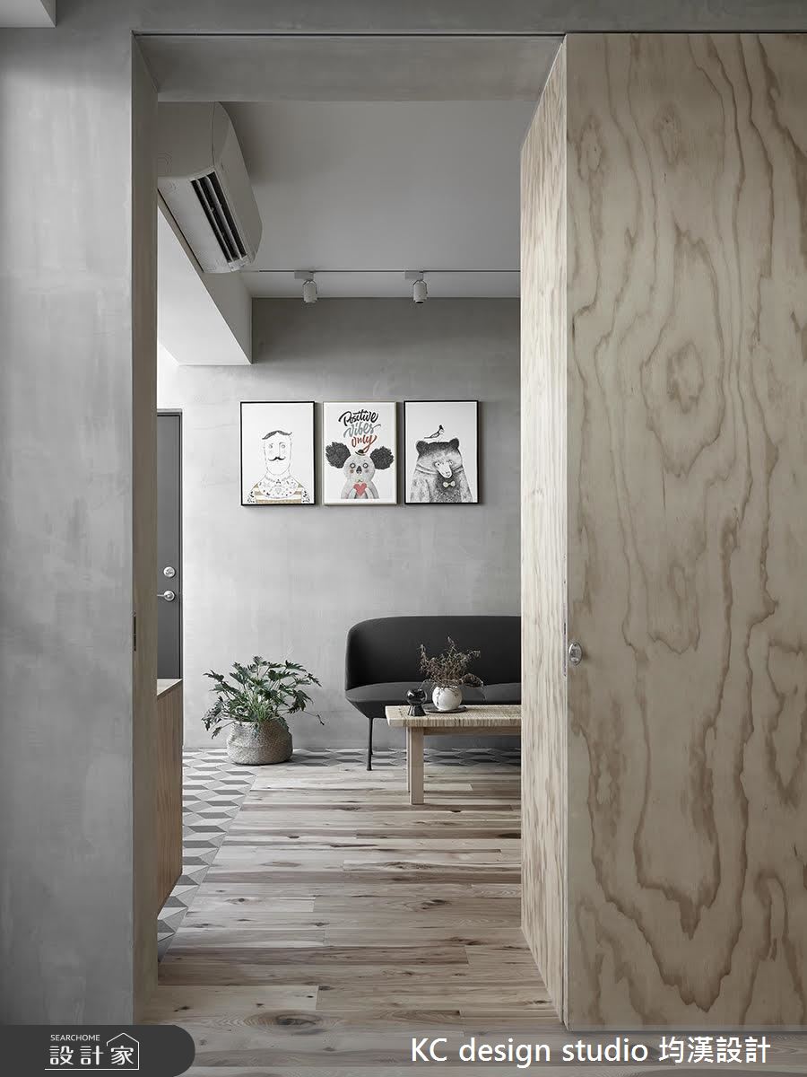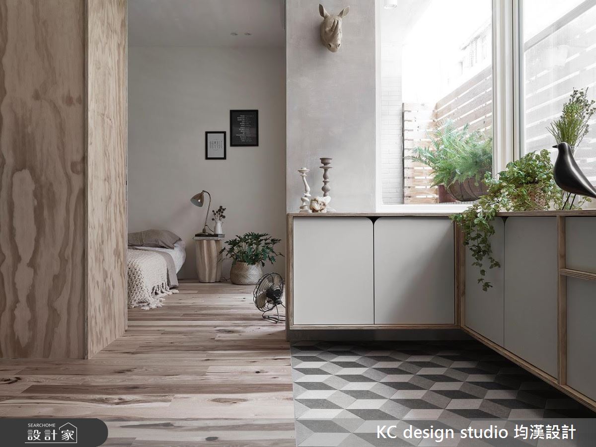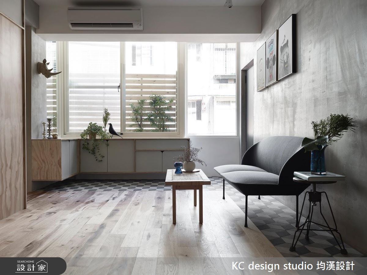 受限於屋況條件,唯一採光來自前方巷道,於是設計師將光線接引入室,依據採光面加以室內佈局,僅以一座雙面櫃切割出公共與私密空間,讓此雙面櫃除了當作隔間之外,也包覆住室內樑柱,並提供收納機能,形成一體多用的妙用,並以此櫃做為室內中心點,定義出環型動線,促使居家行走更形流暢自在;建材使用上,則選用木料、花磚與水泥互相烘托搭配,分別帶出居家調性,在各機能區域分別以適度比例為表現,居室正中的大面櫃體選用風格獨具的松木夾板,表現大器的紋理線條,客聽與臥房則鋪以胡桃木地坪,呈現居家溫潤調性,廚房櫃面則選用杉木實木板,透過相間色調的跳色處理,衍生用餐領域的輕鬆氛圍,牆面上,則使用水泥粉光適度介入,提供視覺暫息的轉換與留白!