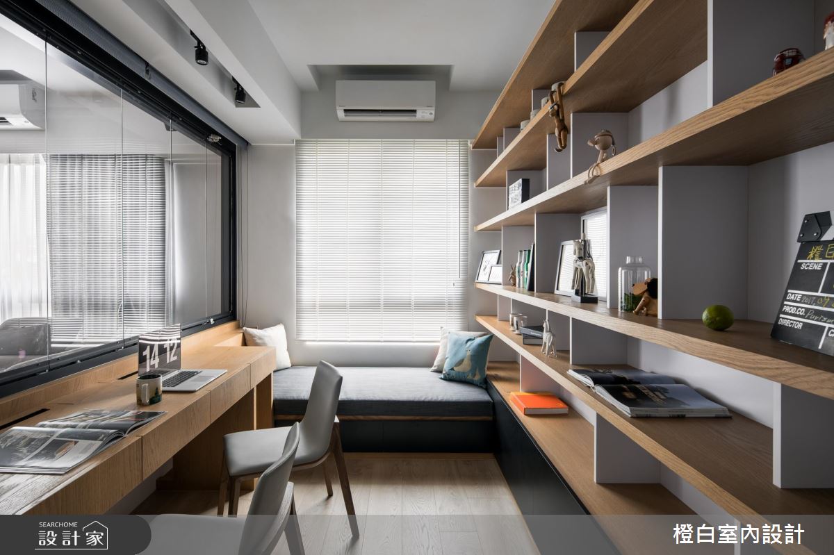 為了營造舒適的書房,設計師特別在窗邊設置可自由坐臥的臥榻,並結合整排展示收納機能,讓場域兼具閱讀與休寢主題,使用上更彈性多元!