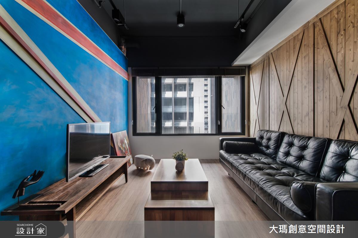 諾大的英國國旗佇立在客廳裡,轉化為搶眼的造型牆,替工業風的居家空間注入色彩,同時呼應屋主夫妻獨特的風格喜好。