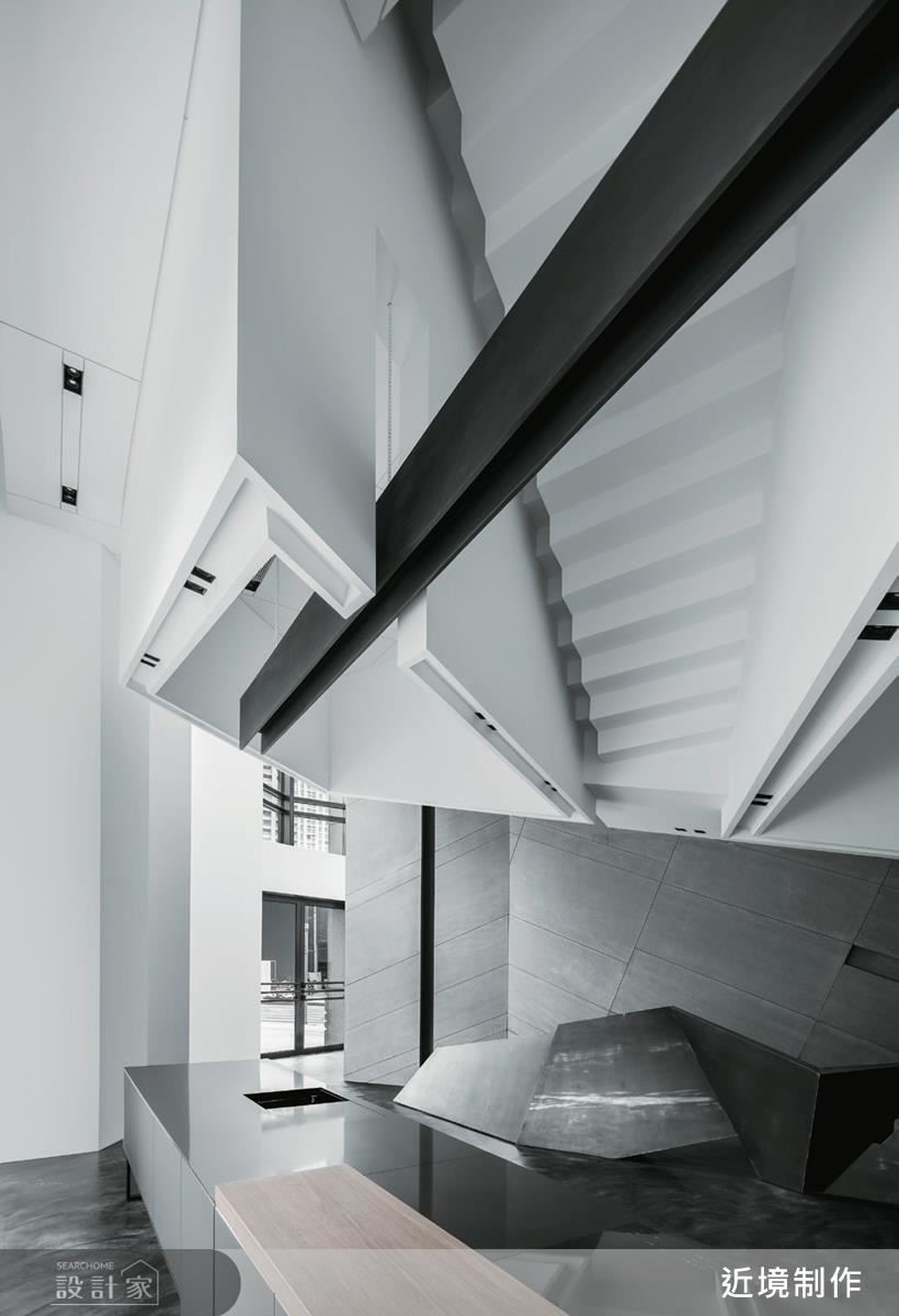 燈光照明,因應室內建築造型而安排,現代感十足的幾何線條,既滿足實用機能,同時讓空間美感倍增。