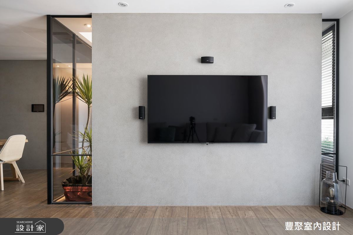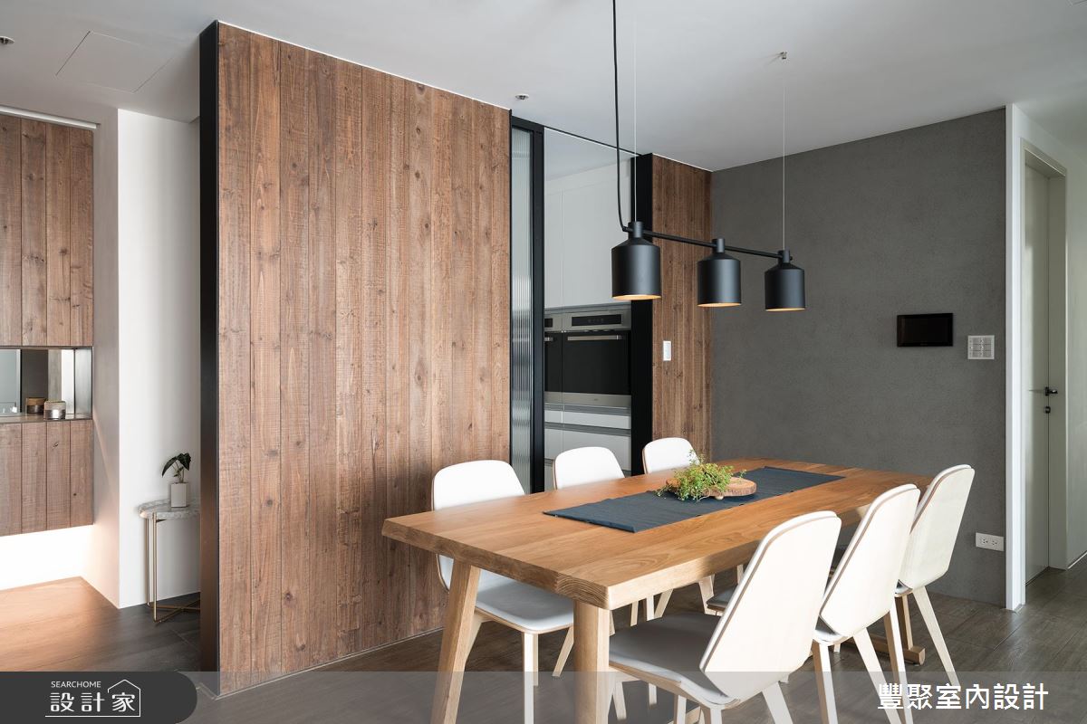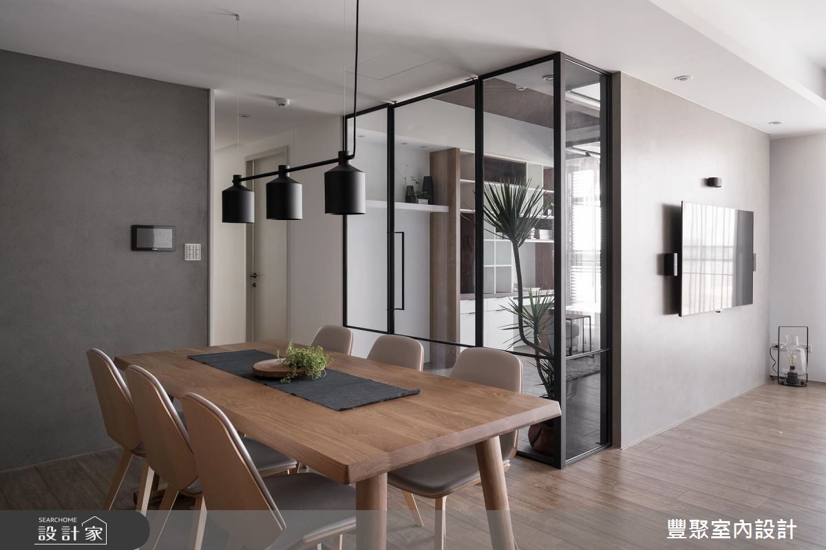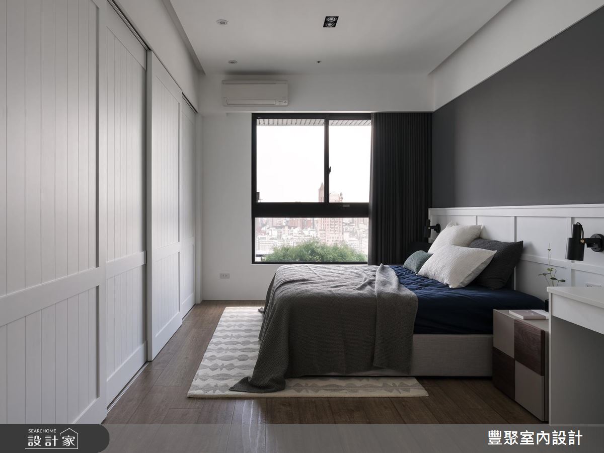 居宅以白色、木色作為基底,除了以木質當作壁材,刻意表現清晰自然的質紋,讓牆面形成匯聚目光的焦點,也在客廳電視牆後方加入一個玻璃盒子,作為屋主專屬的書房空間,以鐵件為框架、玻璃為建材,導引視覺與光線的流動,內部挹注許多收納展示櫃體,以燈光烘托擺放的收藏物件,讓空間有如一處精品展示間,跳脫個性化的氣息;寢臥內,於床頭加入沉穩色調,與大面積的白色櫃門形成對比,搭配明亮寬敞的整體視野,交織出高雅的場域景致,並加入略帶美式感的壁板線條,給予床頭櫃與梳妝檯機能,圍塑出令人感到安定的實用情境!