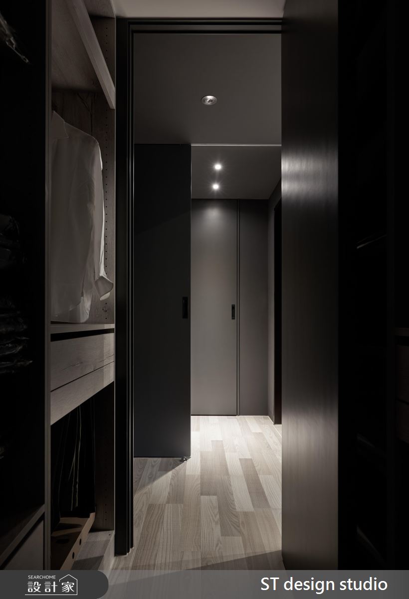 簡約而溫暖的 40 坪現代風居家,像是美術館藝廊一般,設計師以橫跨客廳和閱讀空間的巨幅樺木書牆,收納了大量書籍收藏,透過大面的框景,也讓客廳、餐廳相互成為彼此的風景,並利用外部廊道、轉角等作為畫作藝廊,上方加設投射燈,完美地展示畫作收藏。玄關和餐廳處則引植一道雙面用途的黑色木作量體,除了作為領域間的界線,更解決了餐廳直對大門的風水問題,邊角處特意切出了內凹型狀的平檯,可作為穿鞋椅使用,也為玄關區引渡來自外部的採光。靠餐廳的一側,則打造出酒櫃和放置咖啡機的位置,並以一張長餐桌作為重心,提供適合和朋友品飲聚會的場域。主臥室沿用了深灰色和樺木的主色系,呈現出簡約而放鬆的休閒氣息,搭配寬敞的更衣間,更能有條理地進行日常的收納準備。