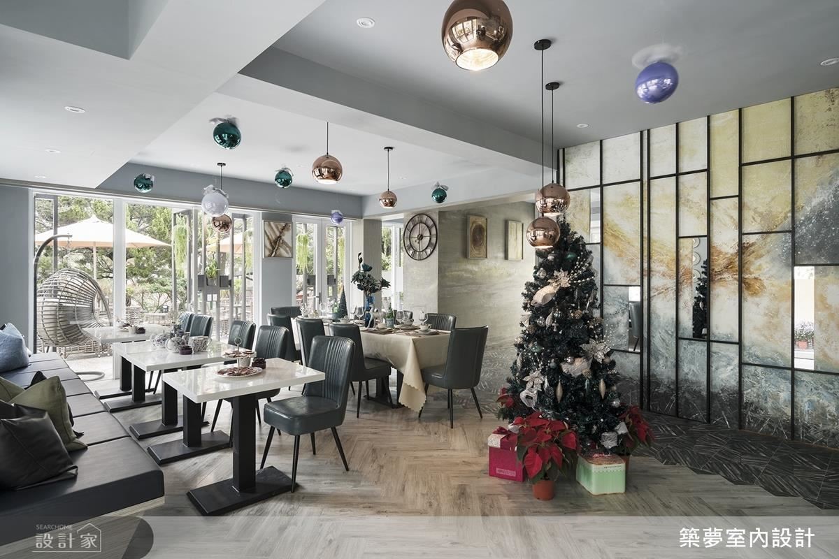室內格局的安排,尤其著重眾人歡聚的開放式大餐廳。大面開窗的設計,達到引光借景的效果。平常家人用餐時使用獨立餐桌椅,當人數眾多時,即可併成長桌,隨時都能舉辦派對,讓親友歡聚一堂。