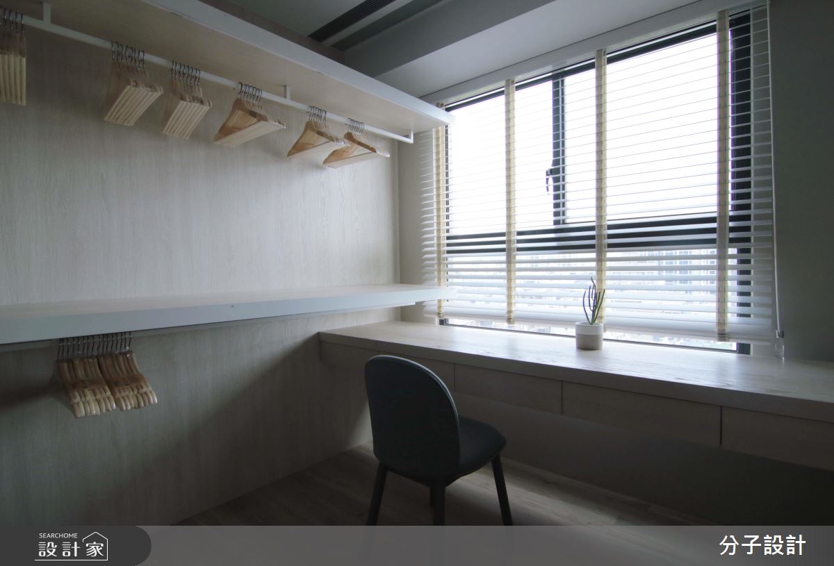 原先僅能容下一張床組的主臥,在重新佈局後,多出了一間2.6坪左右的更衣室,以及一張長3米的化妝桌,瞬間滿足衣物收納的實際需求!