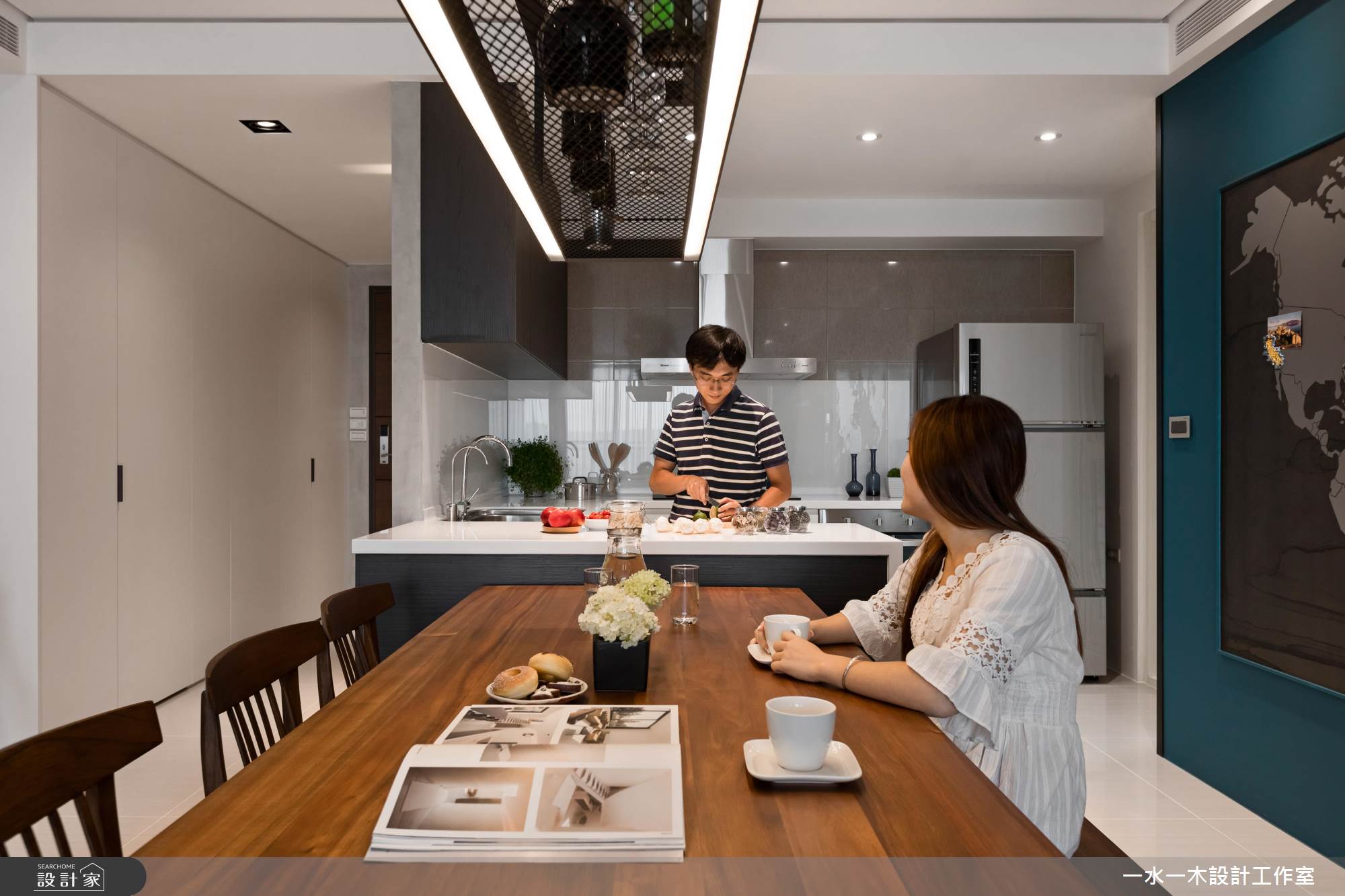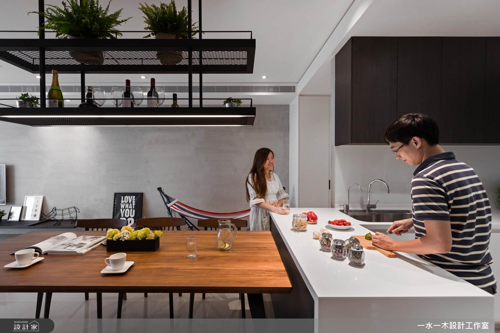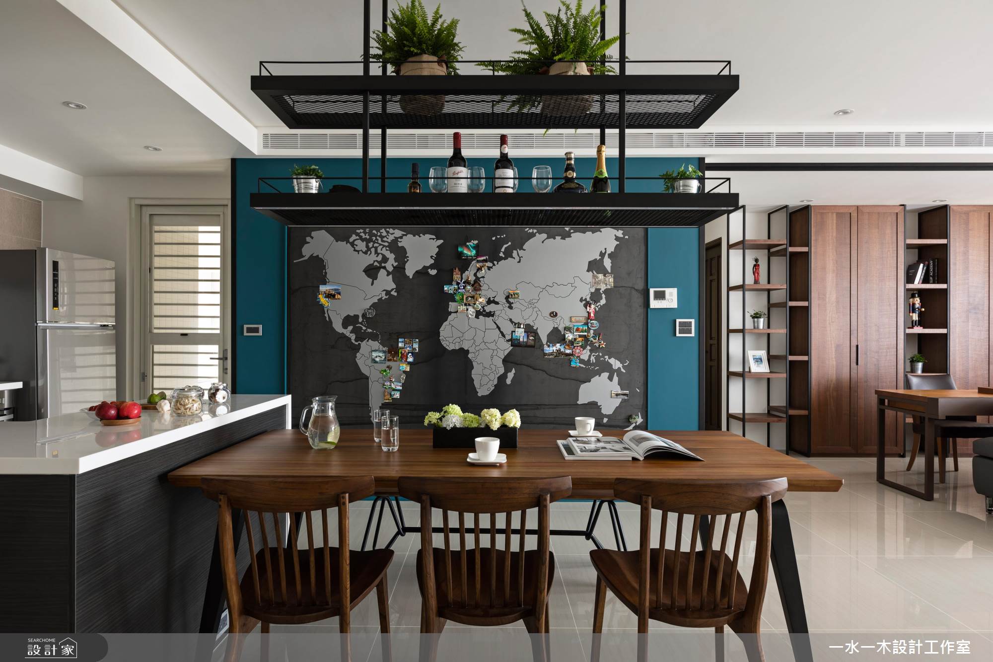 身為園區工程師的夫妻倆,渴望擁有專屬一家人獨有的居住空間,因此,透過簡約、樸實的灰色壁面拉出整片公領域範圍,在木紋與鐵件的元素安排,替空間注入人文溫度;黑板牆上創造一面世界地圖,夫妻倆標示出到訪過的國度,紀錄著旅行時的美麗足跡與回憶。
