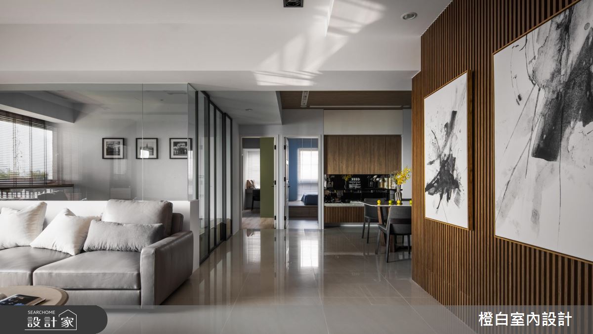 有 2 個孩子的屋主最注重的就是公領域的互動性,更需要好收納、易清潔的特性,且看擅長現代風格營造的橙白設計如何利用隱藏、開放技巧,給予 50 坪空間清透好設計!
