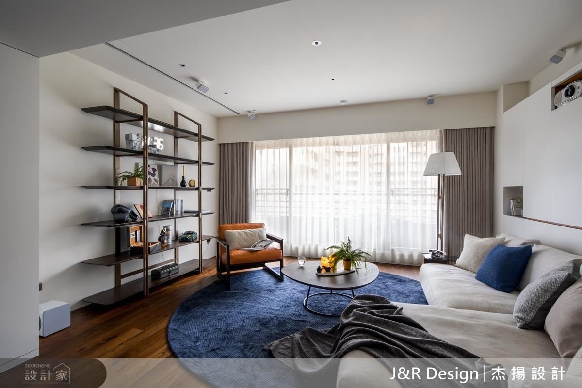 設計師一家人相處時間著重在餐廳,於是打破傳統電視牆,客廳採活動投影螢幕,打造家庭劇院氛圍。